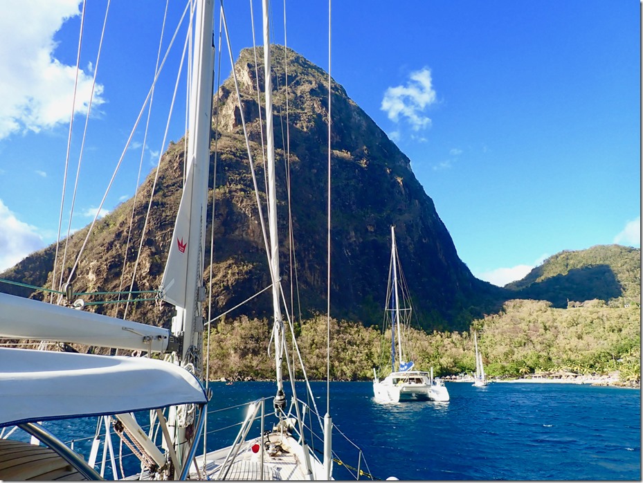 After Bequia, we made a hop to St. Lucia, spending the first night between the iconic Pitons.