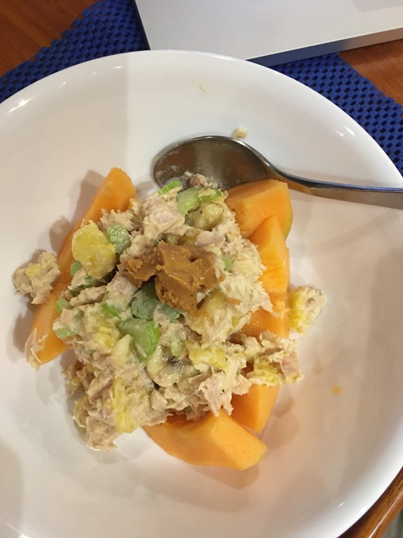 or tuna salad Polynesian. This dish is supposed to be served sprinkled with peanuts, but peanut butter will do in a pinch!