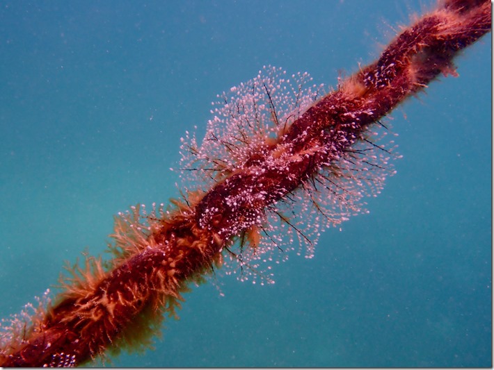 After we made the video of me retrieving the underwear, I swam around the boat for a while. The anchor chain had become an ecosystem all its own–we’ve been in this spot a long time!