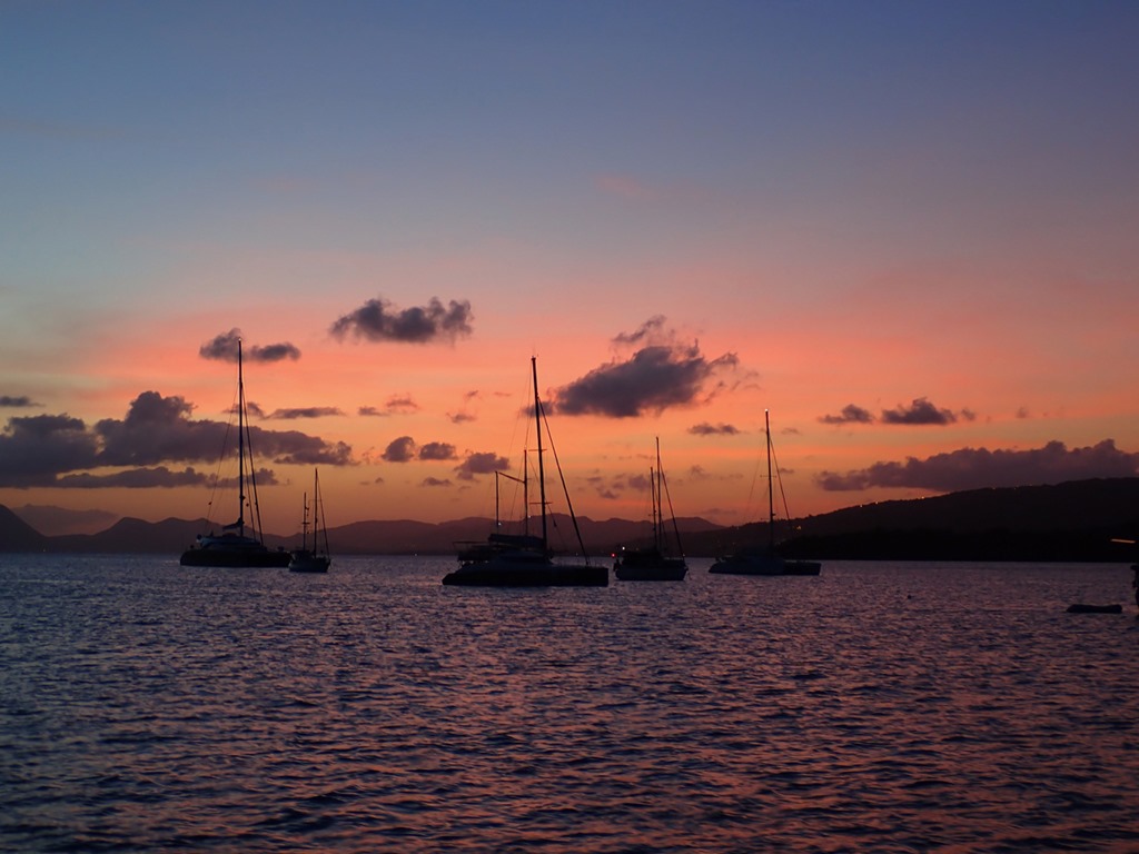 Our Ste. Anne, Martinique anchorage is a beautiful place to watch the sunset, and