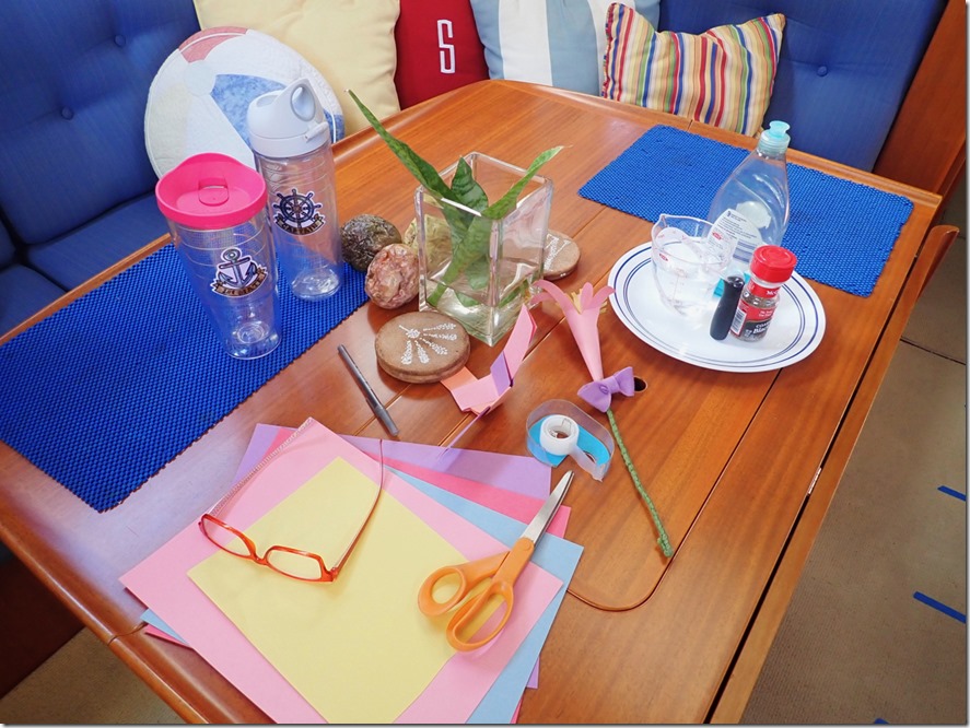 In another area of life—we’ve found ways to keep exercising! Doing my exercise DVDs in our tiny space is not new to me, but Mark has never had a routine other than the exercise we get from our adventures—