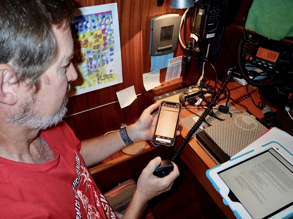 ), hence more cooking. - We have tools that we use regularly to keep us in touch with our neighbors, such as the VHF radio and SSB radio. Besides more legit ways to take advantage of the VHF radio (which I’ll mention later), there’s always the technique used by the nosy among us (and everyone is nosy at one time or another). The technique allows for listening in on conversations being had by others using the VHF, just a quick switch to the channel the other two parties have agreed upon to have their communication.