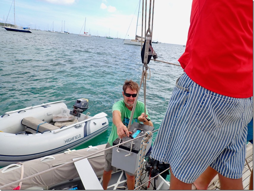 We’ve taken care of one of a few things that need to happen before leaving Martinique to go anywhere is a possibility—we bought some new batteries and installed them with the help of some fellow cruisers. Those things weigh over 100 pounds a piece! As soon as we do some substantial food provisioning and a couple of other things, we will be ready to make a move…I may be a homebody extraordinaire, but my heart’s desire, right now, is to be practicing my exceptional homebody skills in my stationary home in Texas! I’ll keep you posted on that front!