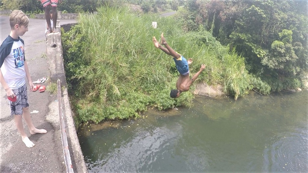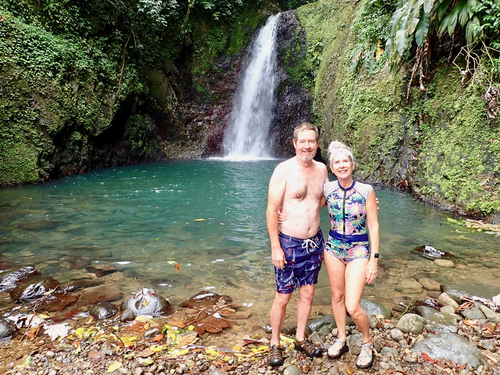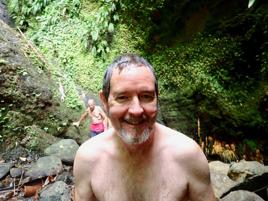 I just love to “visit” Grenada again thru your pictures. It is quite a lovely place and just full of natural resources. Lovely people for sure, as well. What a full schedule of adventures you squeeze in a day! I love the idea of spreading your strong swimming skills with the young learners. Every kid needs to know how to swim and basic swimming emergency care. Clever and helpful you both are. Mark looks quite the proud sailer in the pictures. A skill he has learned and perfected. Any sailor knows he has to be a master craftsman, engineer, and maintenance genius to do well managing what the ocean can serve up. That is why I have long admired master sailors. If you do not learn, then the sail craft wins and you might not even get back to tell the tail. Looks like just enough nice places to enjoy to make it quite a comfort on the island. Rugged, quaint, not too many people…Just our cup of tea! Thanks so much for sharing your experiences. I enjoy them so much. Such good pictures you take. I feel like I need a rest and a place to put my walking staff after your “hash” journeys. Brings back such fun experiences with hash we enjoyed. Hash is a great tradition. Such lush mountain swimming areas tucked away in places. Sure glad you could find them. Once again Kathy, thanks for getting your journal out to us because they give us a taste of the good life you so deserve.