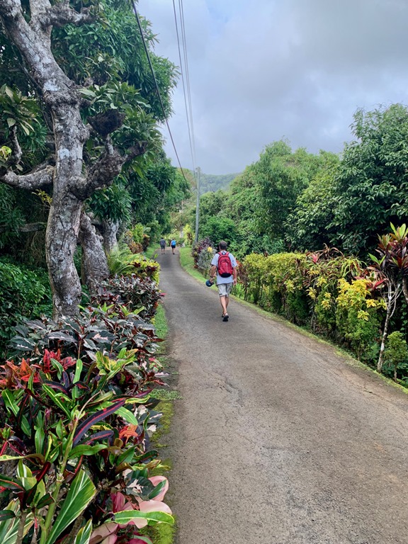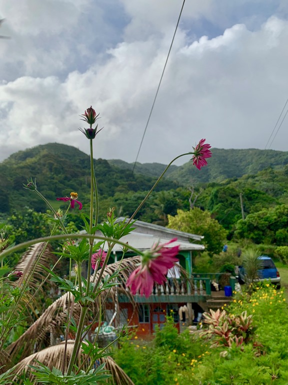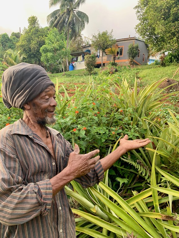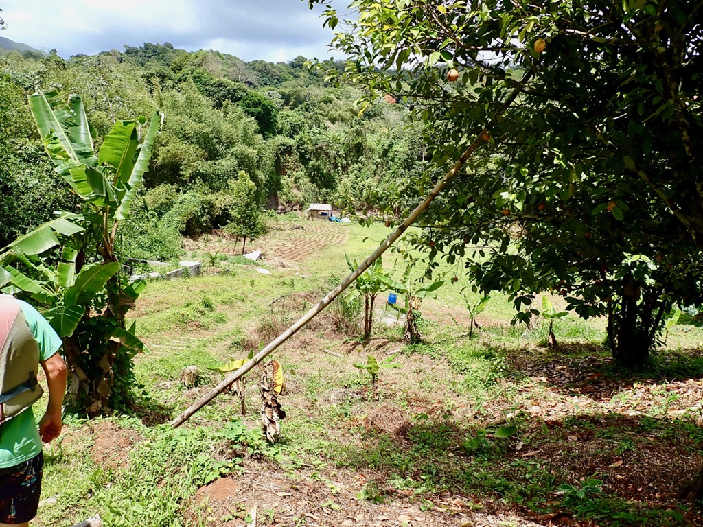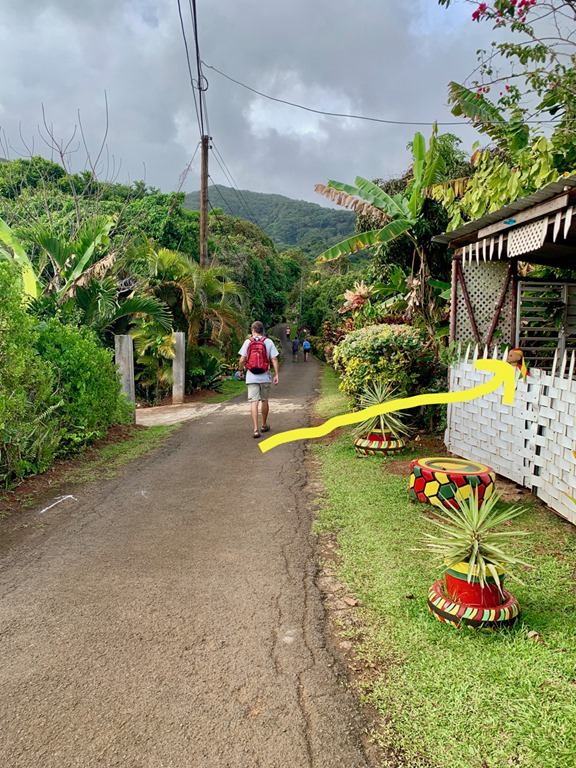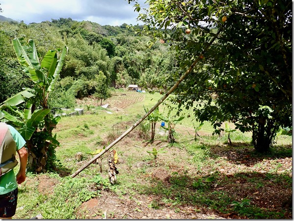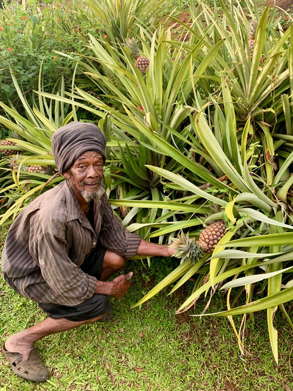 This hash was located in the breadbasket of Grenada as many of them are. Wherever the hashes are located, many of the people from the nearby village come out to cheer us on, guide us, and show us things of which they are proud. Sometimes, someone will ask to have their picture taken as did the man whose small pineapple farm we passed.