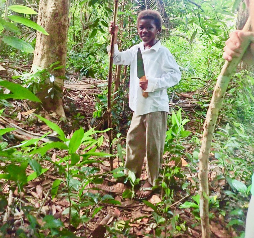 We met a little boy carrying a knife (child sized machete?). This takes the risky play that Magnolia Forest Preschool promotes to the next level, haha! Men walking the streets with machetes in hand are a common sight in areas with many gardens.