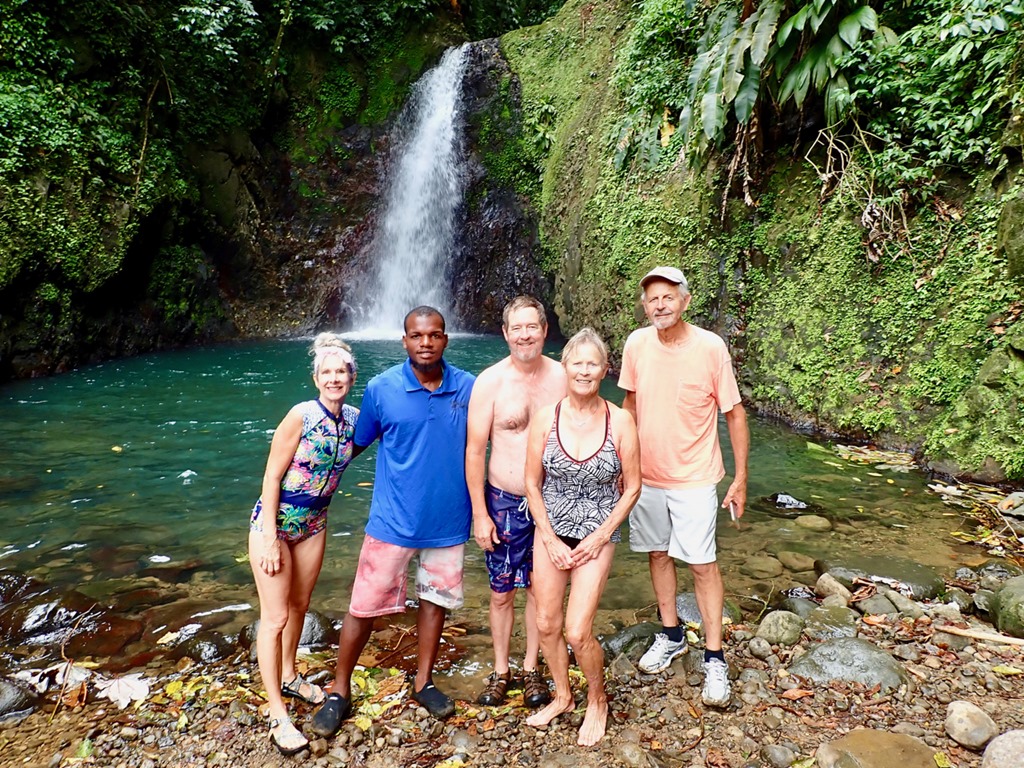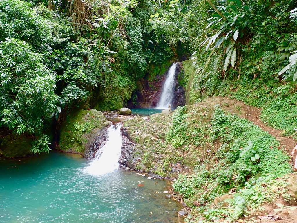 The following pictures are from an adventure to a couple of waterfalls we’ve never visited before, The Seven Sisters Falls and Honeymoon Falls. We took a city bus with our new friends, Penny and George from S/V StarShot, up to St. Andrew where the falls are located near Grand Etang National Park. There is a hike through some private property to get to the falls: