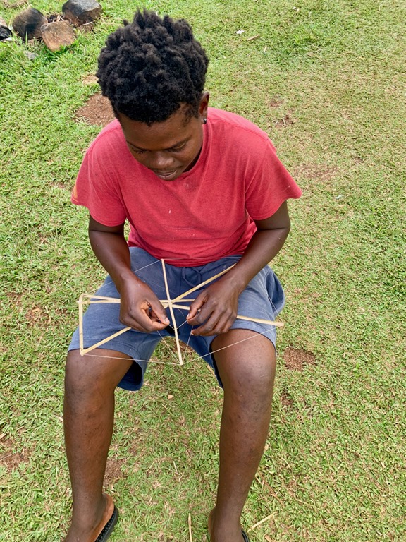 We came upon a boy who was getting ready for Easter by making one of the traditional kites that can be seen and heard around Grenada at that time.