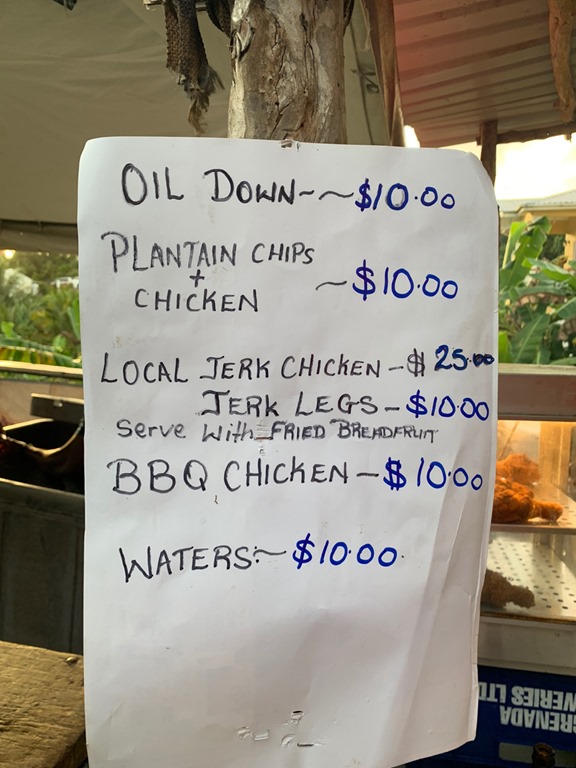 I chose the Local Jerk Chicken w/fried breadfruit @$25 ECD (approx.$8.00 USD.) for my post hash meal at Nature’s Way Bar in Laura, St. Davids.