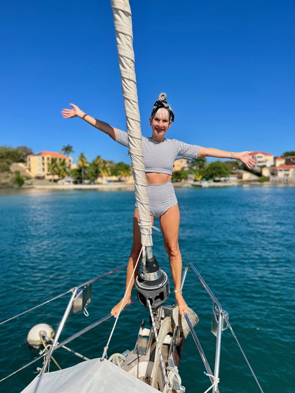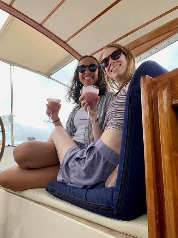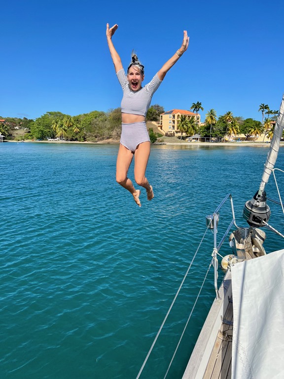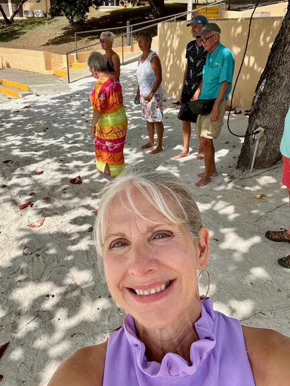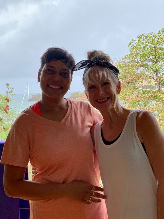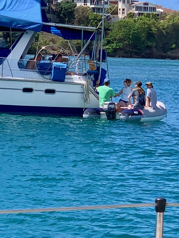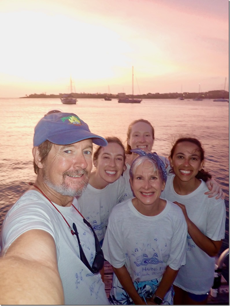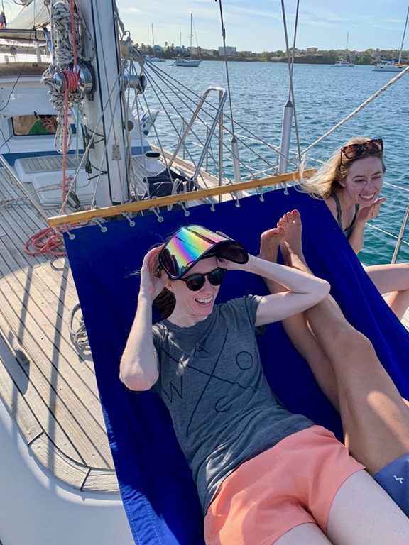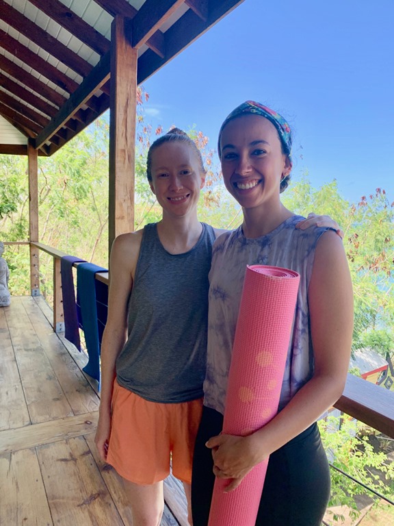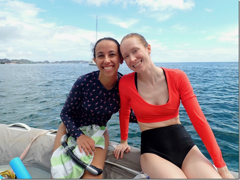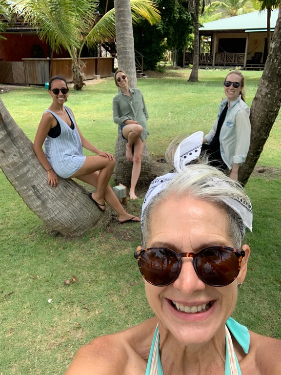 Early the next Amy, Marie, and I walked to True Blue to enjoy my regular Monday morning yoga together there. I was glad we got to do that together before they flew back to New York that afternoon. The two of them actually took in a yoga class there the morning they joined us on Nancy Lu 9 days earlier. That morning Mark had picked them up in the dinghy and I wasn’t too sick to do my happy dance for them on deck as I saw them approaching! It was definitely bitter to see all three of our beloved girls go back to their homes, but we cherish the sweet times we had and memories we made during their time with us on Nancy Lu!