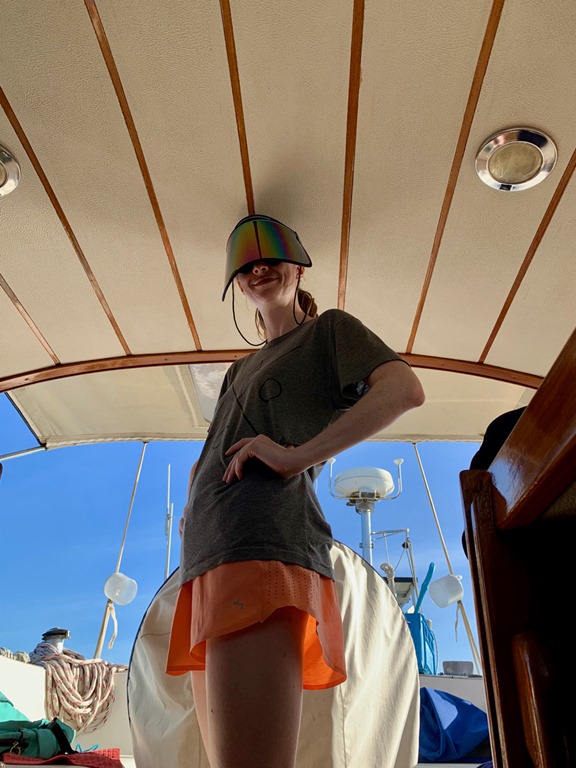 I was amused by Amy’s super protective visor that she wore when enjoying a swim off Nancy Lu or relaxing in the hammock that George made and let us borrow. I am glad that she takes care of her fair skin!