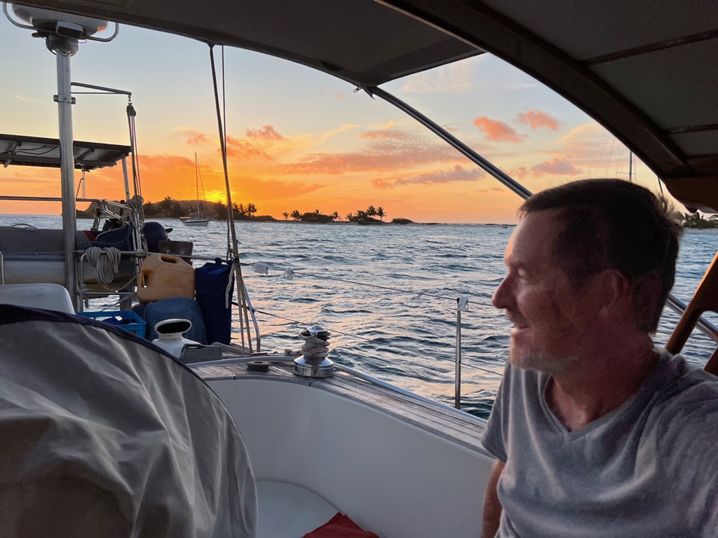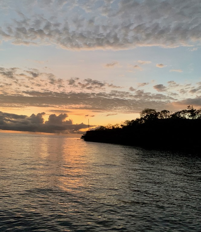 We took one last selfie during the golden hour before we dinghied back to Nancy Lu floating in the background.