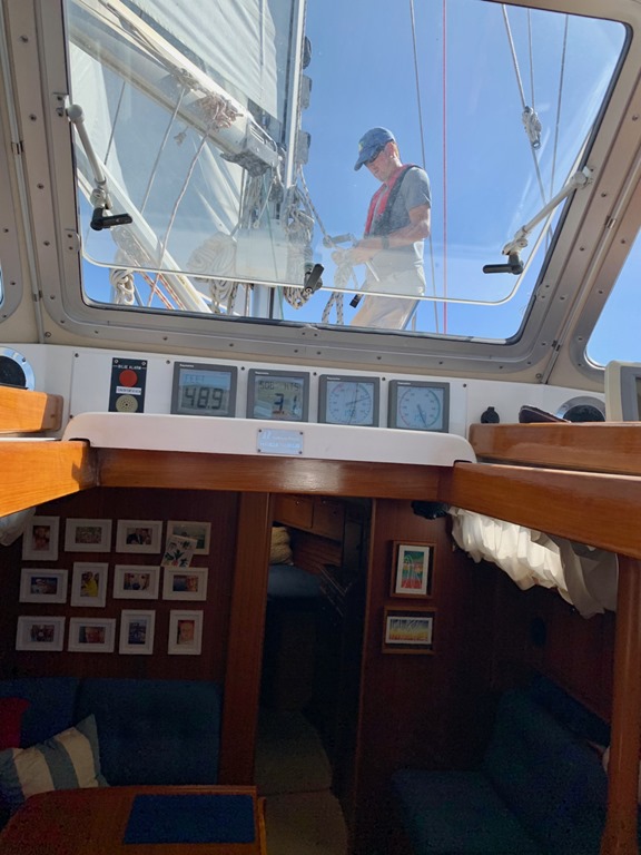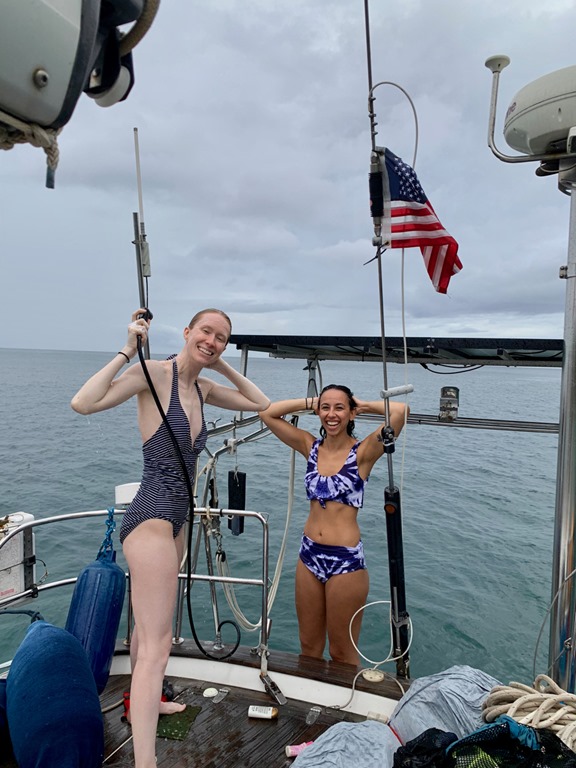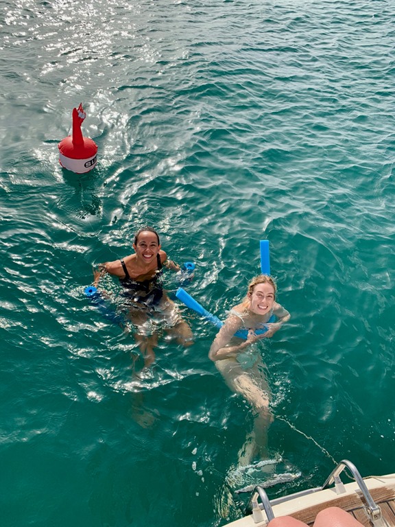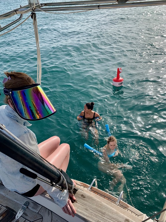 Much of the girls’ down time on Nancy Lu was spent playing games up in the cockpit or in the cabin below! They inspired Mark and me to have nightly Rummicub matches after they left!