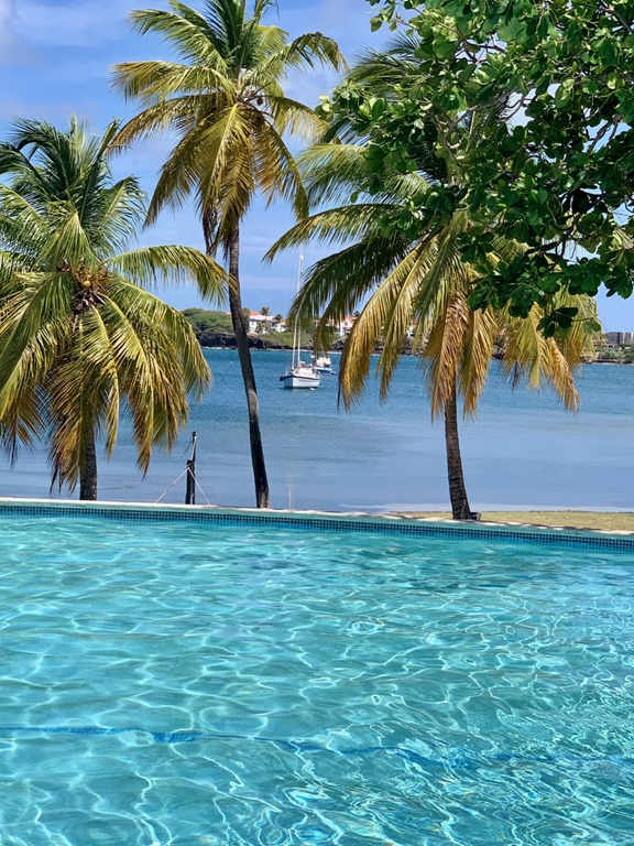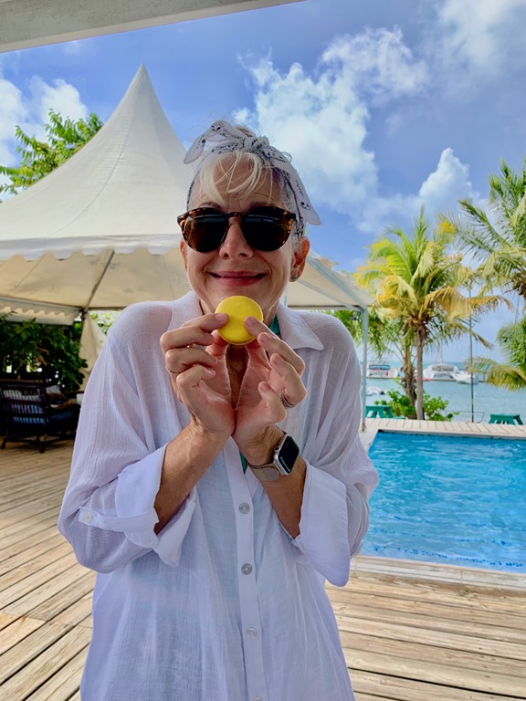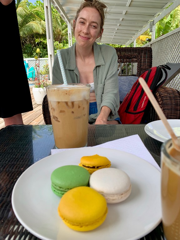 We got up early the next morning for our reservation on Chico’s free bus to Le Phare Bleu Marina for coffee, juices and teas with macarons (mine was passion fruit and Grenada chocolate!!!!!!!!!!!!!!), poolside relaxing, beach admiring, and yummy lunching!