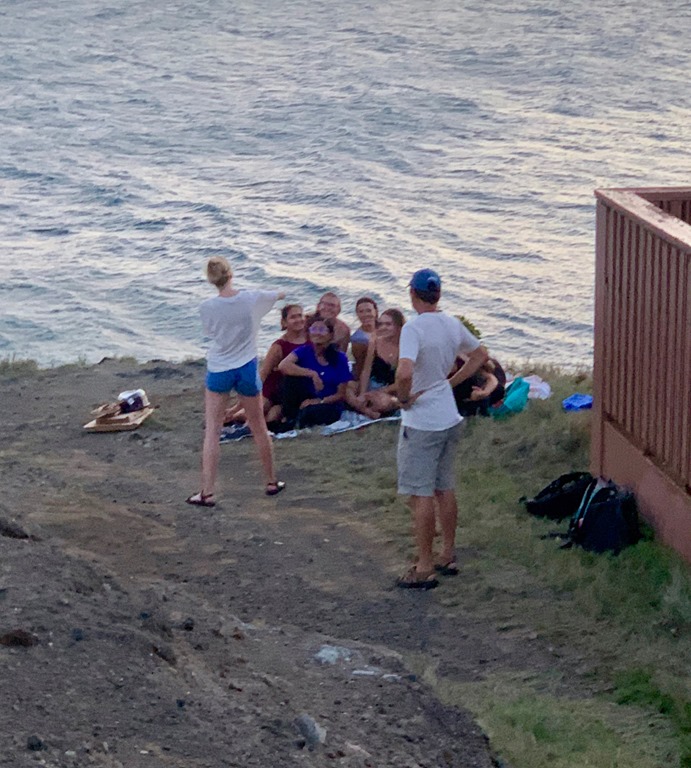 After a little dip in the ocean waters around Nancy Lu, we all took an evening walk together to the point so we could take pictures in the shirts that Ben, another of Amy and Marie’s apartment mates, custom made us for our time together on Nancy Lu! Thank you, Ben!!