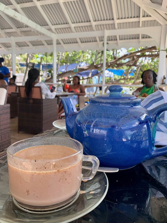 From there, it was easy to take the complimentary water taxi into Paradise Beach Club where we enjoyed their wonderful cuisine and exceptional service and hospitality on three separate occasions! First, we experienced the special “Sunday Gospel Brunch”! I think my favorite part, besides the uplifting singing was the delicious cocoa tea, which I’ve come to learn is a sweet memory from childhood that most Grenadians share. It is now a sweet memory for me!