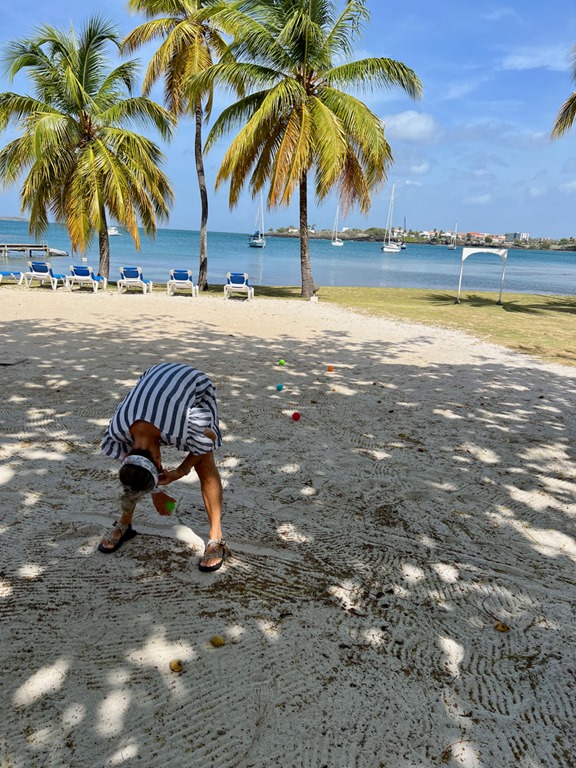 On the morning before Claire’s flight left that afternoon, we all enjoyed a delicious breakfast and a fun game of bocce ball using the set that Frank and Jules so kindly suggested that we borrow to play with the girls.