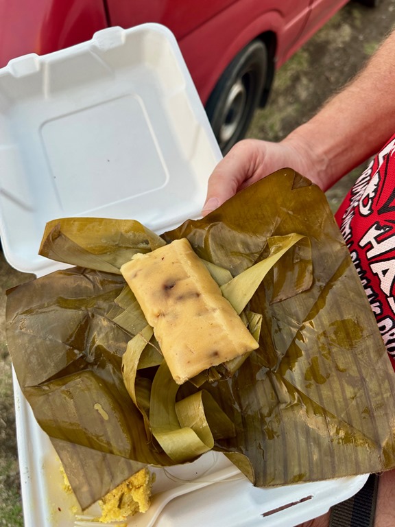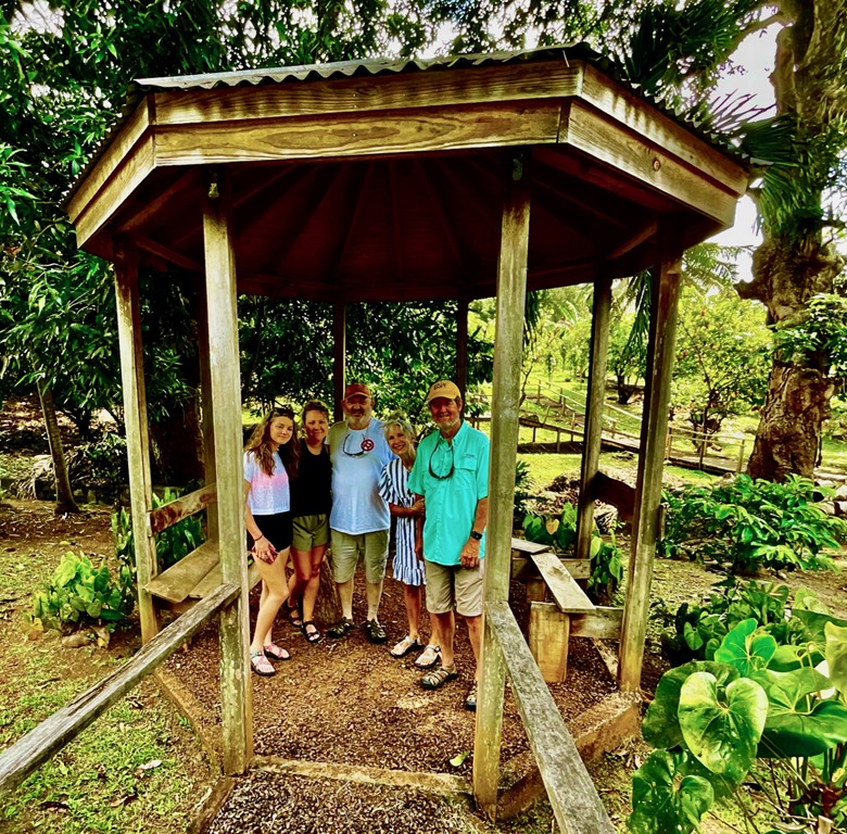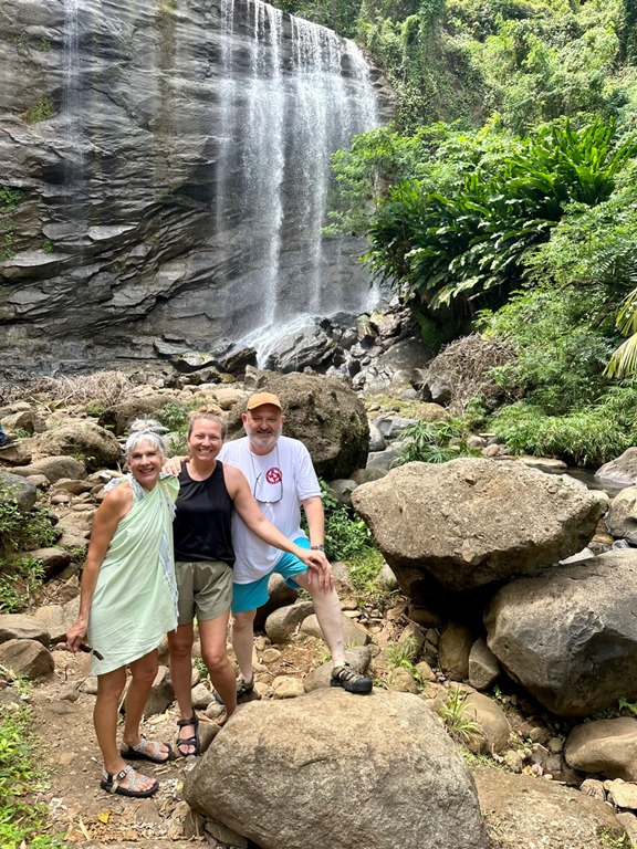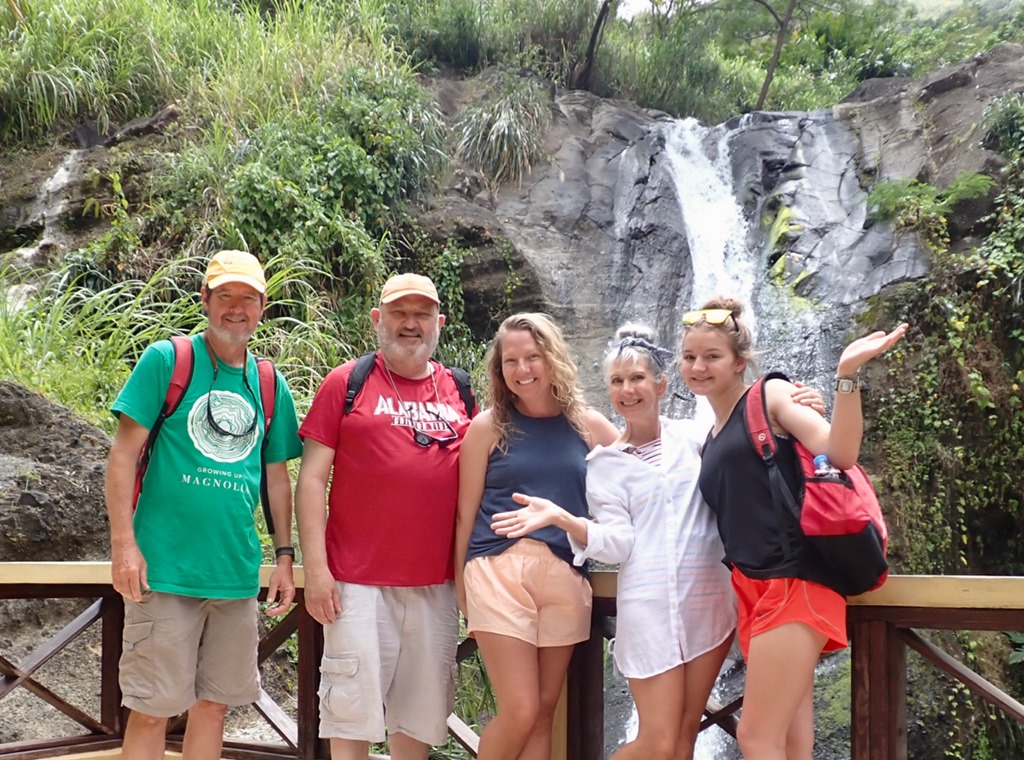 Hash #1232 was in the close-by village of Marian near Woburn Bay, but this time we followed our tradition of taking Shademan’s bus to get there. At the end, I tried a local dish called Pastelle. It is made with cornmeal and wrapped in a banana leaf. I wasn’t a fan. In keeping with our focus on company coming, we FaceTimed Katrina during the hash. She and Ava just happened to be shopping for hiking gear during the call! Katrina and Ava got to witness first hand how slippery some parts of the trails can be because as we were FaceTiming, my feet slipped right out from under me and I landed right on my bottom! Again, the discussion continued between Mark and me as to whether a hash was a good idea to do with guests…