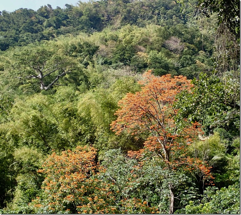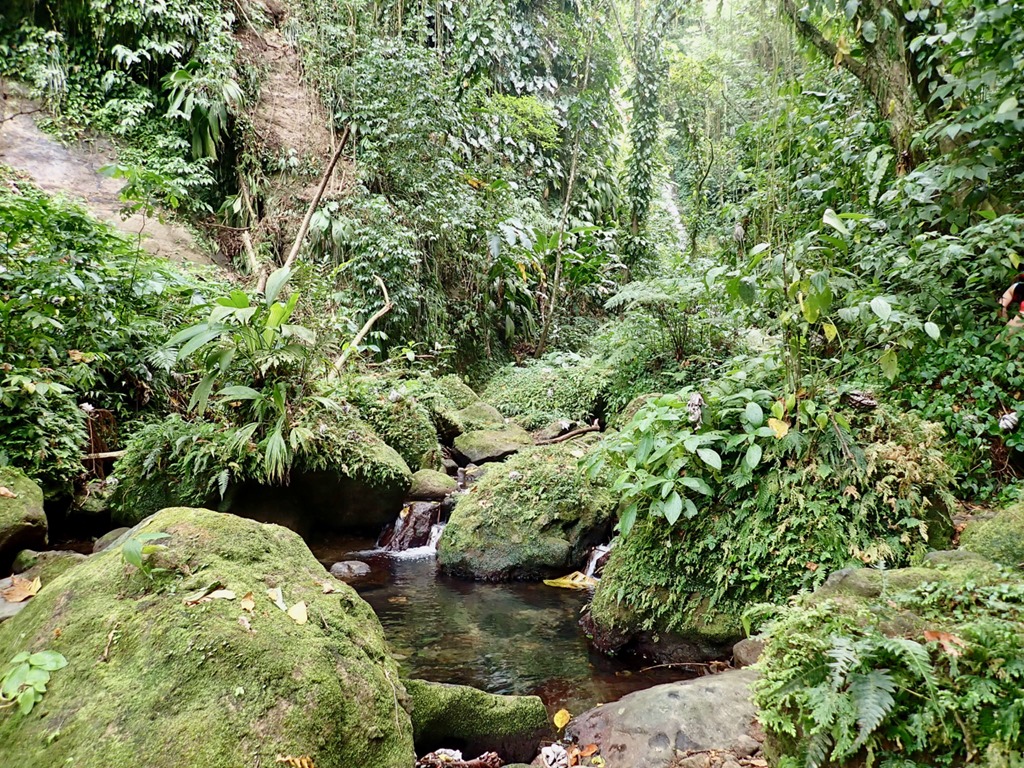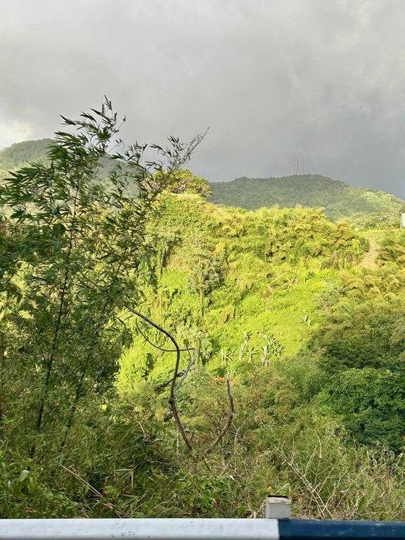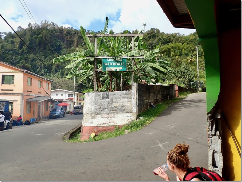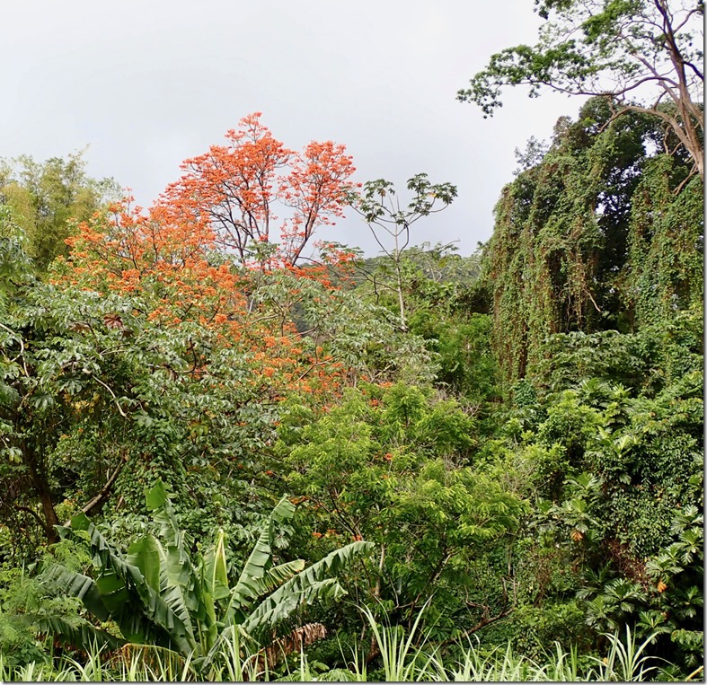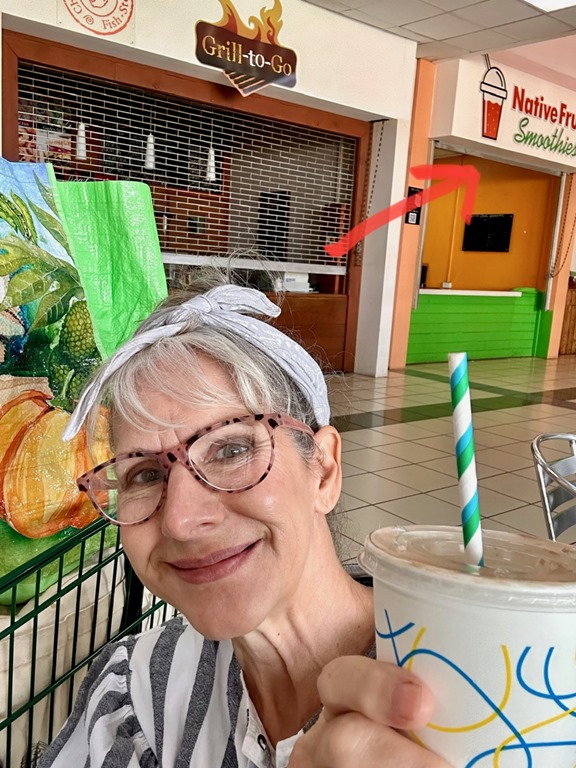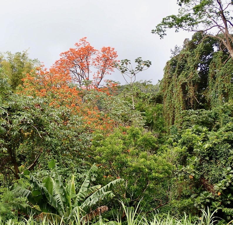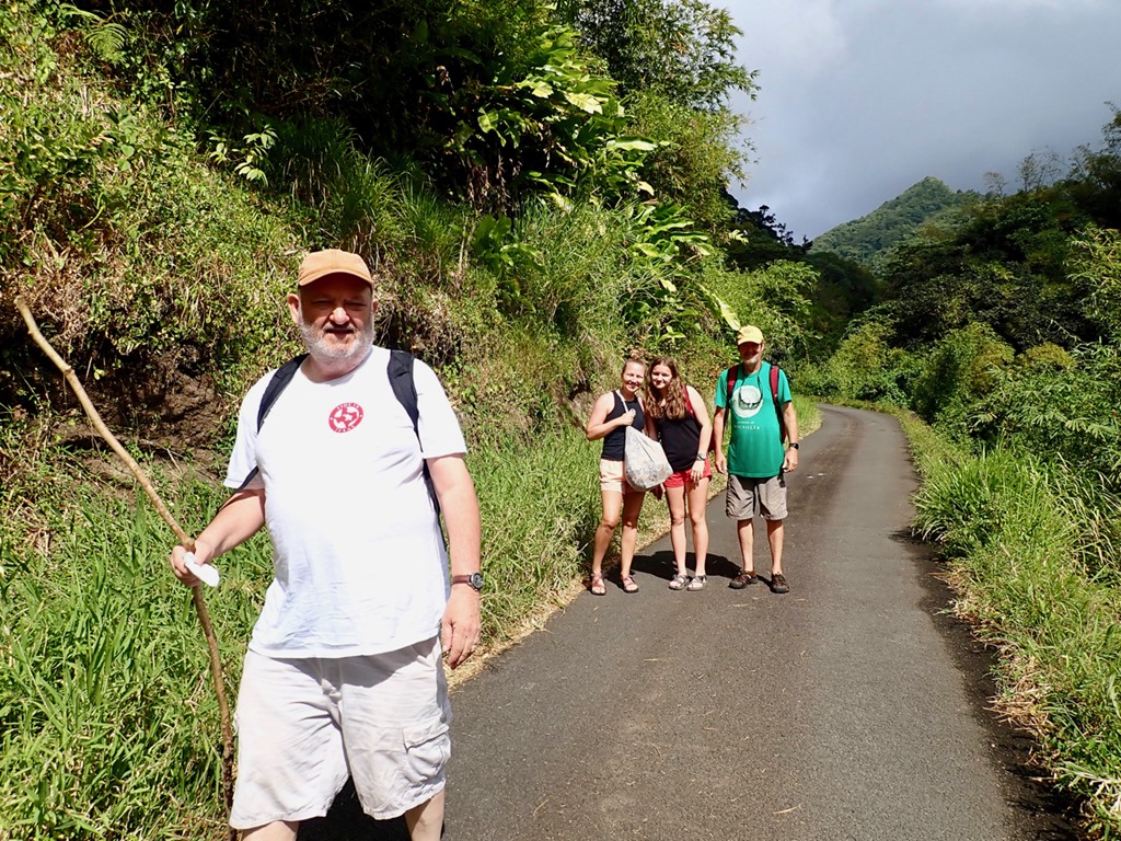 We enjoyed having our “hash guide”, John, but if there was a downside to following him, it was that he opted to lead us down off the ridge using the trail marked difficult instead of the longer but MUCH LESS STEEP and easier choice! This long, treacherous, slippery and steep path down from the high ridge + the paved but equally long and steep hill up to the ridge began Mark’s ongoing argument to convince me that a hash was something our guests might not enjoy. The second way we broke with our normal hashing traditions was taking advantage of the fact that we got there on our own and leaving earlier than normal to walk across the street to the Spice Isle Mall and do a little grocery shopping at the IGA before catching a bus home.