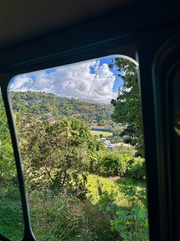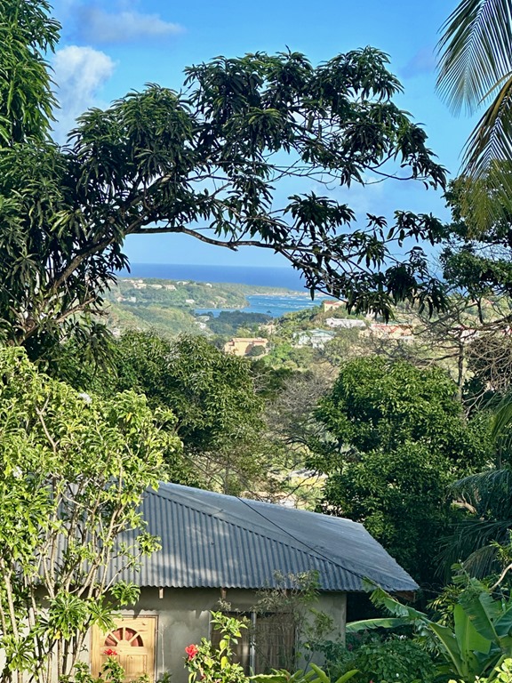 After a steep road that I thought would never end, but 66 year old John took at a quick pace, we hiked along a ridge where looking left, we could see Grand Anse Beach and the IGA grocery store where we do most of our shopping and