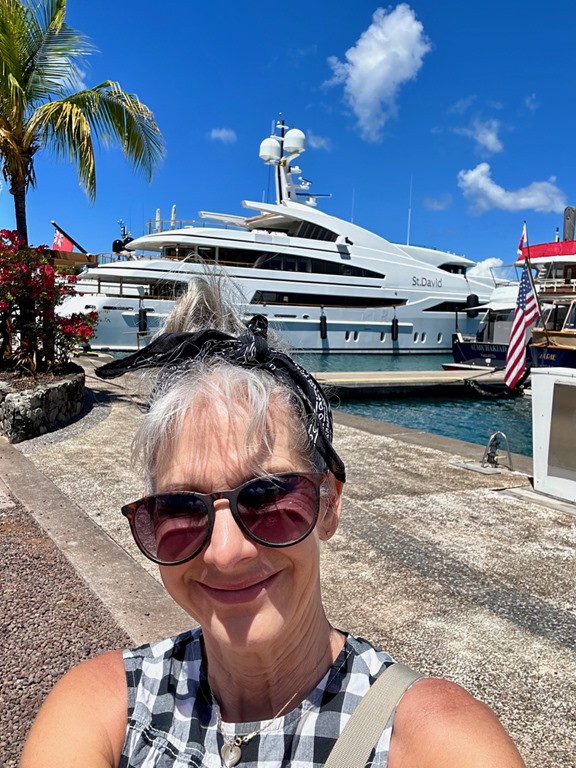 We enjoyed a nice Saturday pre-hash lunch with our sailing friends, Margrit and Heinz at Port Louis Marina where I took a stealth picture of a cast member of the upcoming 11th season of the Bravo reality TV show, Below Deck. (We had stumbled upon them filming at Prickly Bay Marina one evening.)