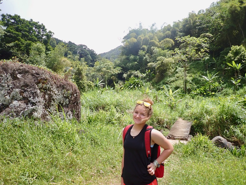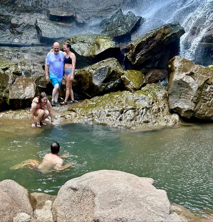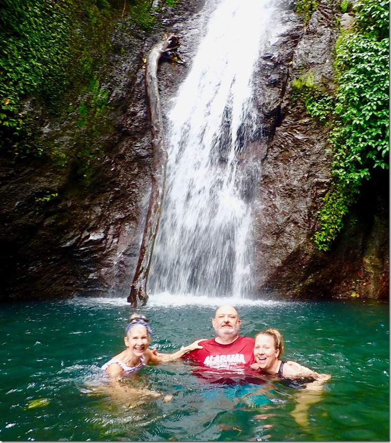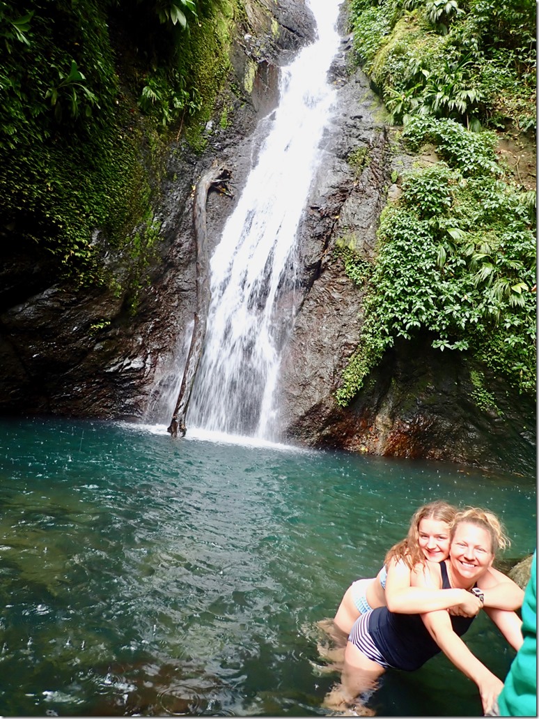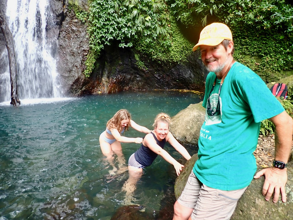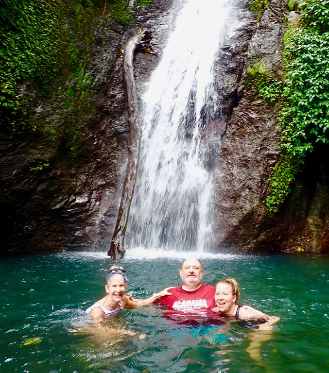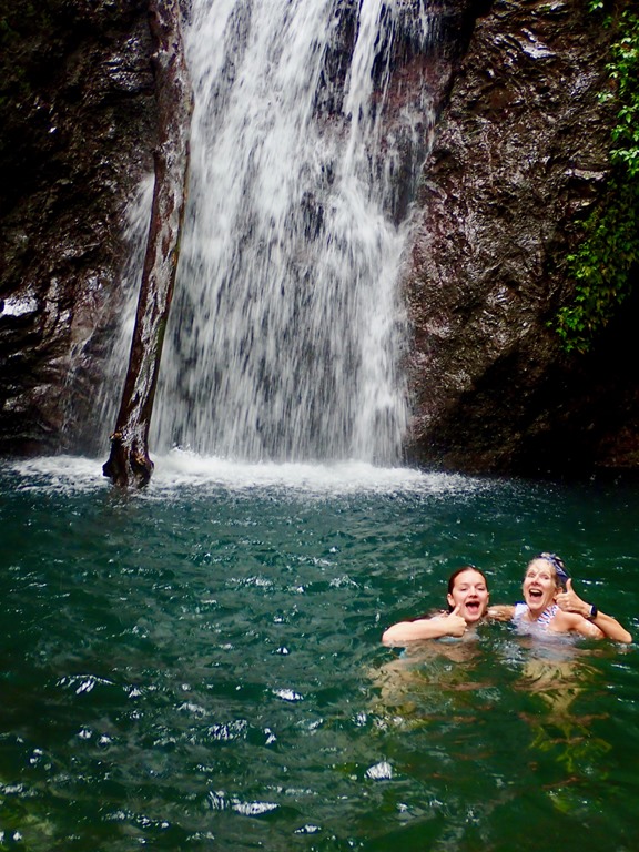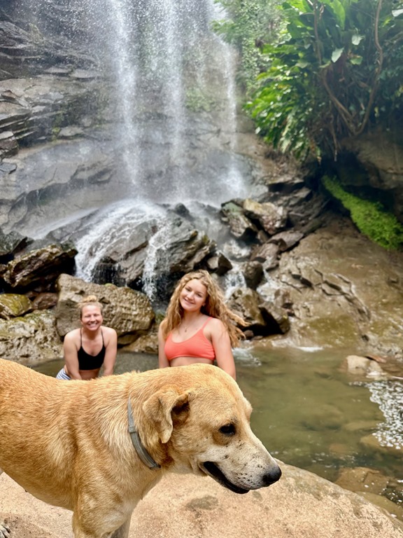 We all experienced the biggest fall along with a dog-friend that Ava made at the beginning of the trail. Katrina and Ava decided to slide down another gently sloping fall into a pool downstream from the big fall. I decided, with the guys, not to. I was just going to get pictures of Katrina and Ava… Well, of course, I changed my mind when I got there a little later than the girls. Katrina and Ava’s experience was a little less treacherous than mine. Since they had gone ahead of me with Cutty, he was better able to guide them in exactly where to go. Since I came to the place a little late, he had to yell instructions to me, and I misunderstood where to slide down. Turns out, I went down what Cutty described as “where the young boys go”. I paid for it with a bruised and scraped hip, but it wasn’t too bad!