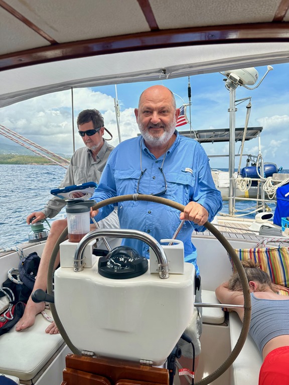 There was no seasickness to report, and everyone who wanted to got to take the helm returning to Prickly Bay as “salty dogs”!