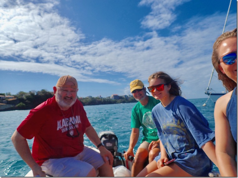 The next day, we were up bright and early, and if you want to go anywhere while staying on Nancy Lu, you’ve got to take a dinghy ride. By the end of the week, Kenny was counting down how many embarkments and disembarkments there were left to endure!