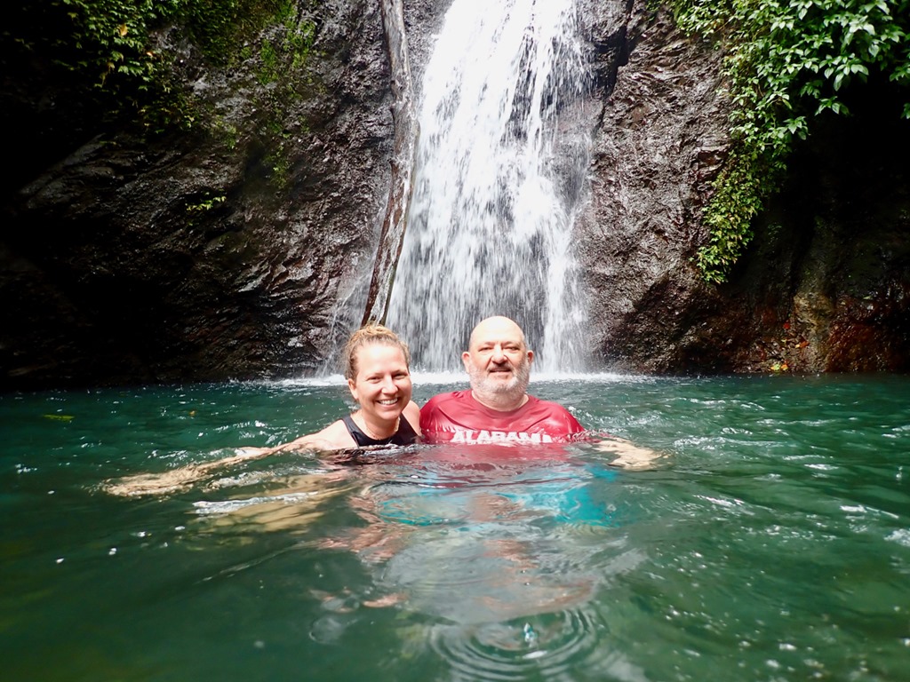 On a tip from a fellow cruiser, we asked Cutty to include a stop at Laura Herb and Spice Garden. It was a real treat! Cutty always makes many stops along the way to educate his clients using all of their senses about all the spices of Grenada, so we were already knowledgeable enough to answer questions that our guide through the garden asked! Katrina mentioned to me that this garden tour was her idea of the perfect vacay…just what I love to hear!
