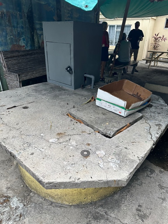 Because of learning that there are several fresh water wells scattered on this tiny island, I was able to identify one at a little hole-in the-wall place accessed through a narrow alley-way where we like to eat called Sweety Bird’s.