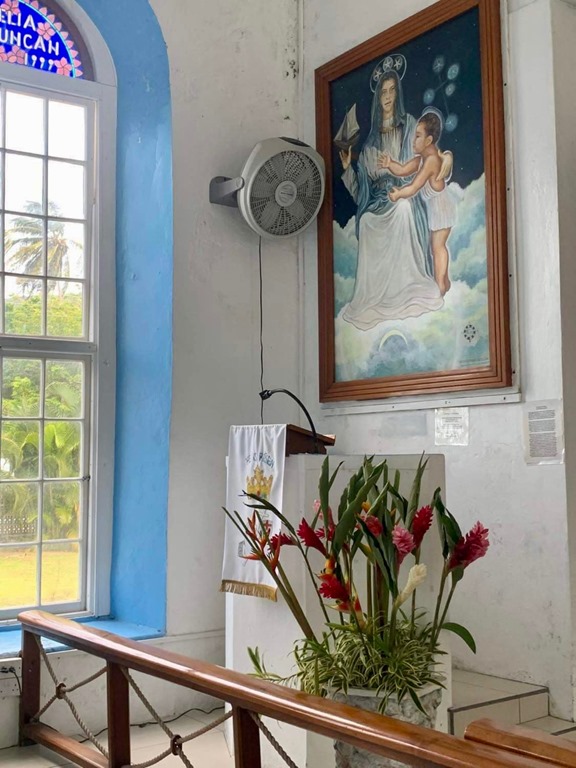 As we were leaving, we were offered prints to take with us of the beautiful artwork at the front of the sanctuary, “Our Lady Of The Seas” & “St. Vincent Of Saragossa”. I will treasure them, always!