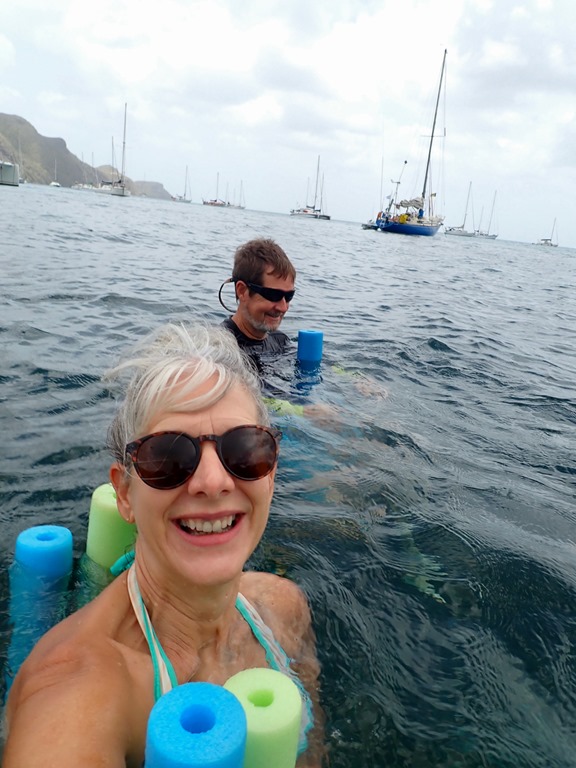 Our anchoring choice put us “next door” to old sailing friends, Annemarie and Steve on S/V Freebooter and in the same “neighborhood” as Heinz and Margrit, old friends we had connected with earlier this season in Grenada! Soon after, our friends, Nick and Amanda on S/V Ernestina showed up and joined the “neighborhood” and the socializing!