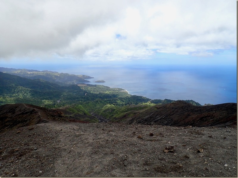 The walk along the black sand beach was longer than I expected it to be, and I was already needing to have a “bathroom” break. I was not convinced that I was up for the adventure, especially when Billy told us he thought the hike would be 3 hours up and 2 hours down. We later learned that hiking up to the volcano from the west side of the island as we were doing was a short car ride from Cumberland Bay to the beginning of the hike, but a longer and more difficult hike to the summit; whereas, the hike from the east side of the island was a very long taxi ride from Cumberland Bay with a shorter and less difficult hike to the summit. That’s what our friend, Peter, had done. We committed ourselves and felt safe under Billy’s guidance. I took comfort in the fact that it was just the two of us so we could turn back at any time. I assured Billy we would pay him the full amount even if we decided not to go the whole way. On we went…