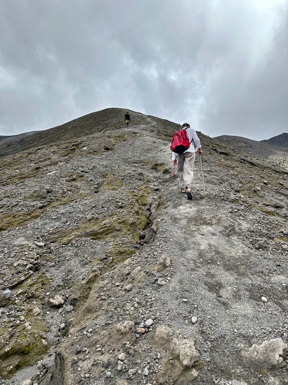 On we trudged upward. Finding purchase for our feet was getting increasingly difficult because of all the loose gravel from the explosive eruption.
