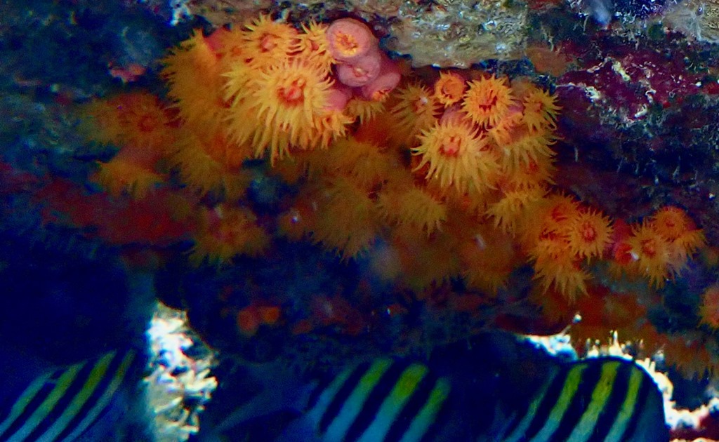 Orange Cup Coral with Sergeant Major fishies