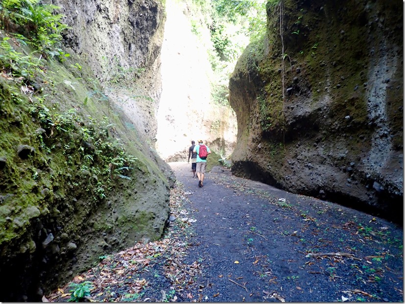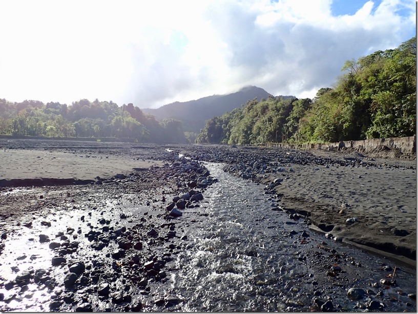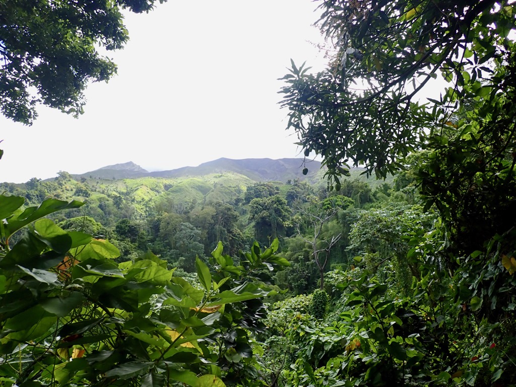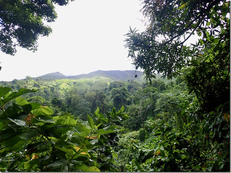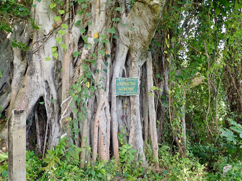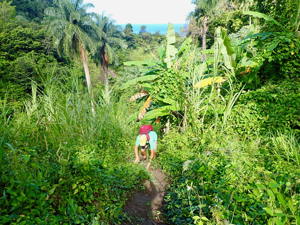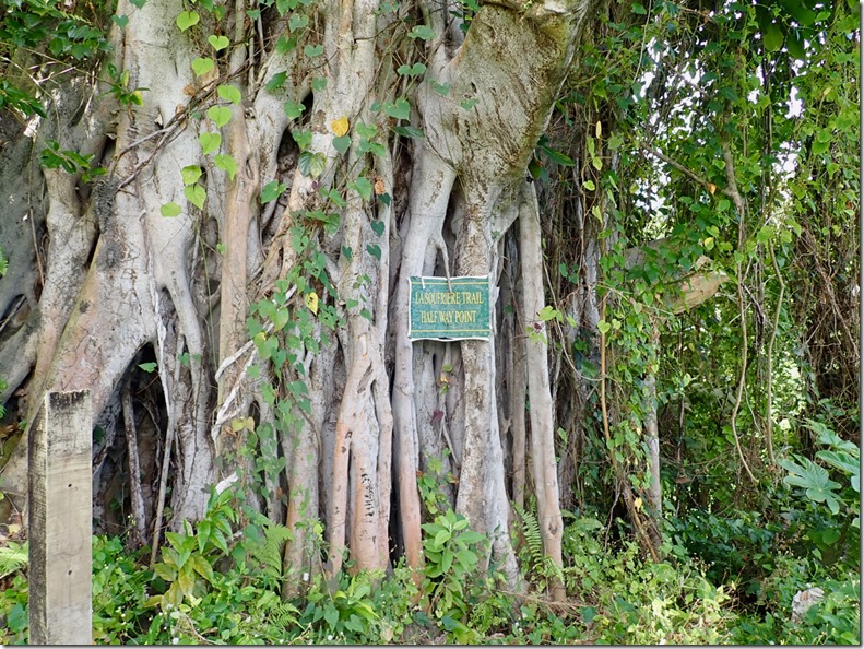 The car trip to where our hike began was eventful, starting with a flat tire along the way as we drove through our driver, Jovie’s home village. The fact that he knew everyone in the village made finding a replacement car, which he borrowed from a friend, take only a matter of minutes. We set off again and made it as far as the last village on the way to the trail before Jovie was stopped by a smartly uniformed and vigilant law-and-order-man, Officer Campbell. Alerted by our pale faces in the back seat, Officer Campbell rightly suspected that we were paying customers. The lack of proper license plate identification on the car signifying that its driver is licensed to taxi prompted Officer Campbell to order Jovie to exit the vehicle. After a thorough interrogation on the side of the road, Jovie confessed to being unlicensed. He was given a stern talking-to and forbidden to transport us any farther, but escaped a fine. It was then Billy, Mark’s and my turn to exit the vehicle. The three of us set off on foot with well wishes from Officer Campbell to “enjoy your hike and the beautiful nature of St. Vincent”. When we asked Billy how long the walk was to where Jovie would have dropped us off, he told us within earshot of Officer Campbell (so we figured he was telling the truth) that it was about 15 or 20 minutes. We decided we were game for that, but after we walked only a short distance, we caught a properly licensed taxi.
