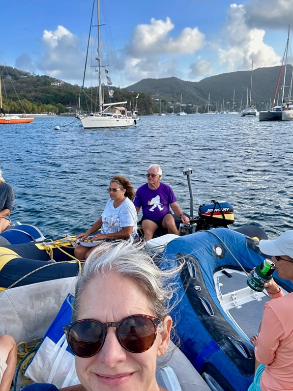 One evening, a bunch of us rafted up for an hors d’oeuvre-potluck-dinghy drift. (We actually did this before we left for St. Vincent, but I forgot to put it in the last blog…)