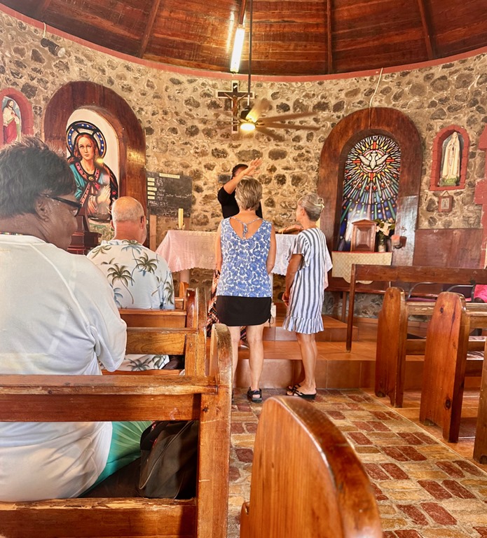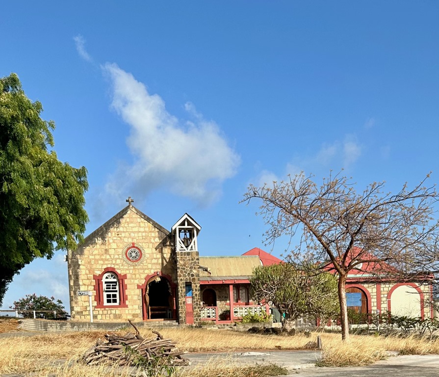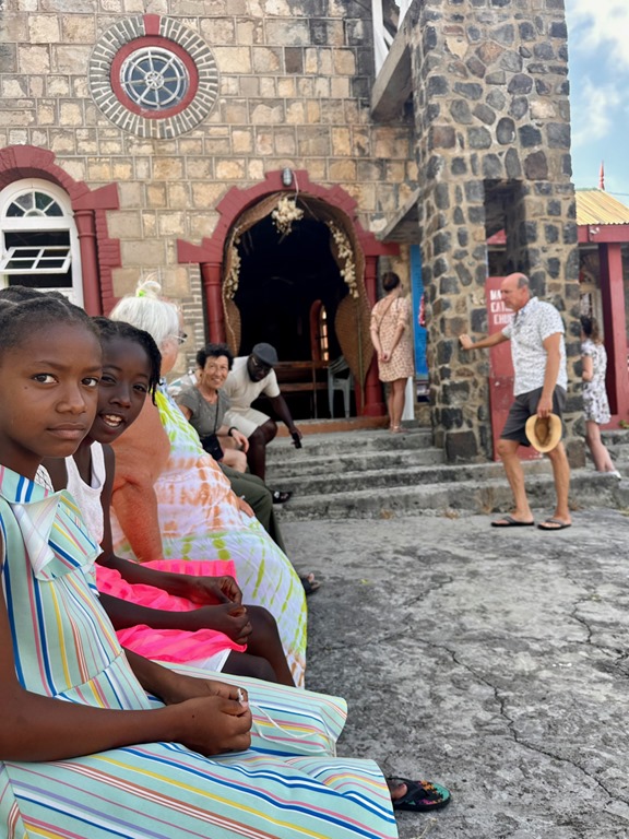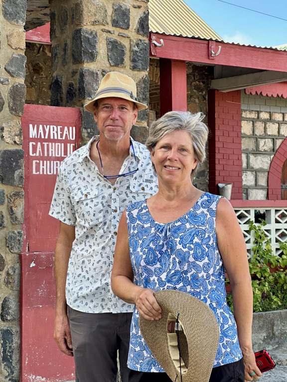 After having Dan and Lori over to Nancy Lu for lunch one day, we explored the tiny island on foot a little bit.  Dan and Lori led us to the Catholic church where they planned to attend on Sunday.  There was a great view of the Tobago Cays out back.