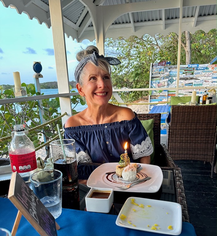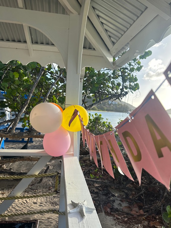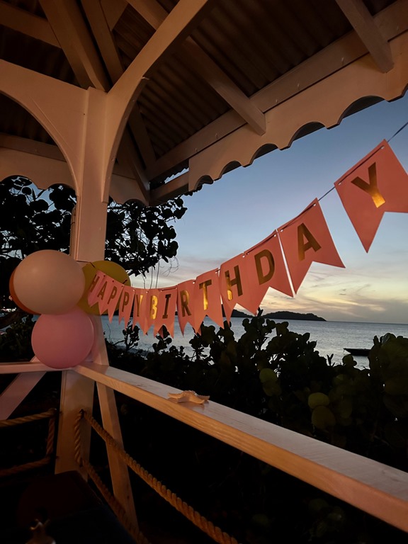 The next day was my BIRTHDAY and I spent it sailing to one of my favorite places, Sandy Island, Carriacou where we arrived just in time to drop the hook and catch the water taxi to Paradise Beach Club for the birthday festivities Mark had planned…