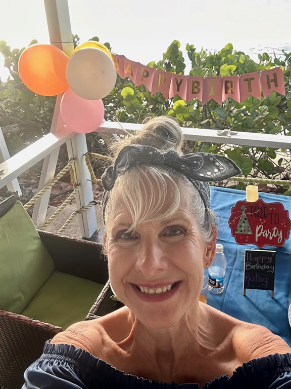 3. Is there anyone that looks more glowy, pretty and happy than Kathy Stanley when she’s doing fun things and exploring? She just makes me happy to see. Some of those snorkeling photos are fabulous. I love the sea turtles and urchins. Do you think the old timey whale hunters would get up on the highest places like you did and look down to see the location for whales? I bet so. The cute little patio. Restaurants are really nice. What a fancy meal for your birthday and a thoughtful husband. isn’t ice cream cake or cheese cream cake a meal? What a pretty blouse or dress and radiant birthday girl. Mark smiled so much for these pictures that I figure he’s got all of this down to knowing what to do and hoping the equipment follows through. What beautiful people live there and help take care of you always smiling, beautiful skin and faces. The church was quiet, different and beautiful in its way. It look like it was strong and sturdy for a strong and sturdy religion. Such a cute, laughing, happy baby greeting at the dorm, What sweet mangoes those looked like. aAgood mango is hard to find outside of the tropics. It looks like you went a little more spoiled this time with a fancy spa or two . You both deserve it. It is hard work vacationing in such gorgeous places in your own transportation, so throwing in a spa or two is the best. The Hash is always a go despite rain or shine. No wimps may apply. Thank you for another wonderful sunshiny journey and the Caribbean. I enjoy winter in the Caribbean with you. Glad you’re home safe to be off again.