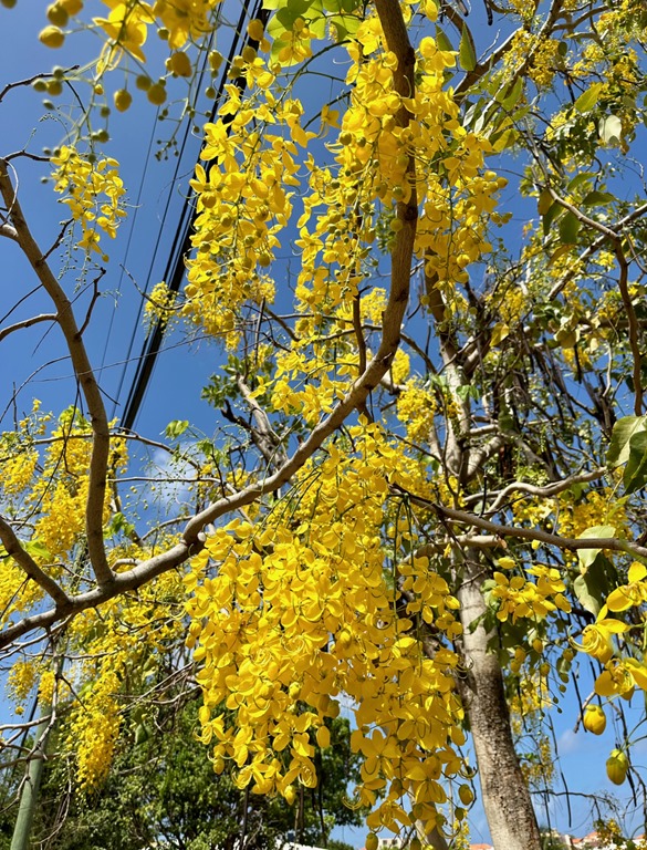 After about a month away, some plants and trees were in bloom that hadn’t been when we left!  Having “lived” part-time in Grenada for a few years, now, I knew to look for one certain beautiful tree on my walk to the yoga studio.  I was not disappointed!