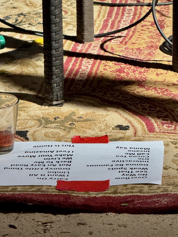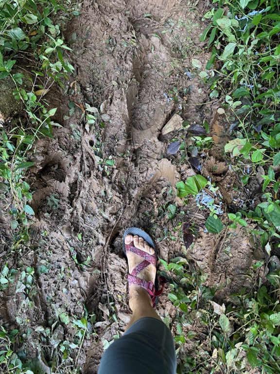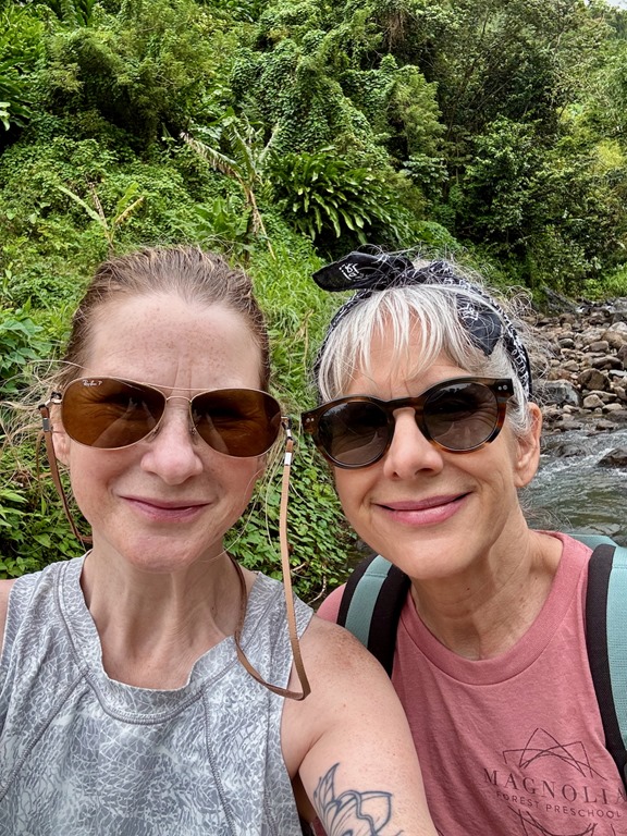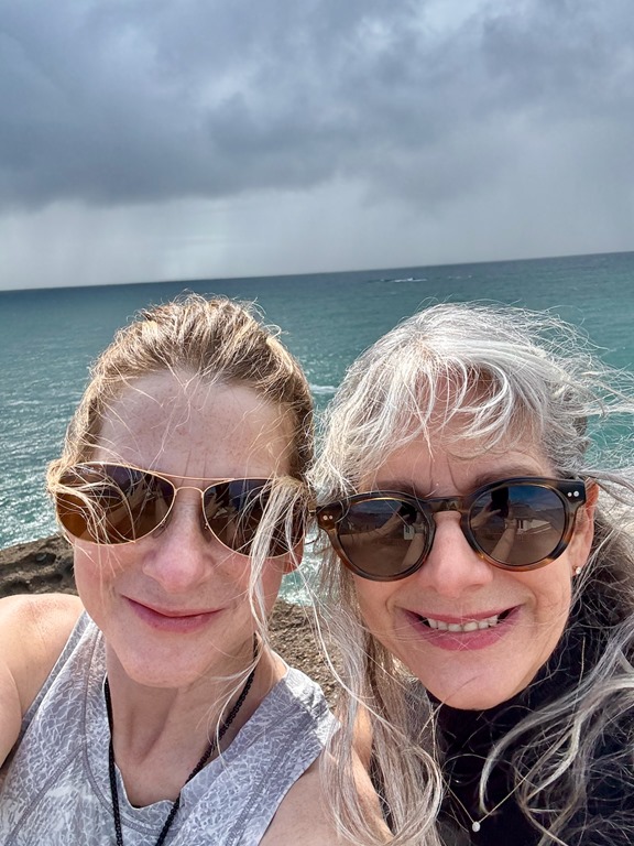 Jenny became part of the routine when she flew in on the 23rd, and first things first: We shared a walk up to the point to enjoy the sunset, but were treated to what our bus driver of years past, Shademan, called liquid sunshine instead!