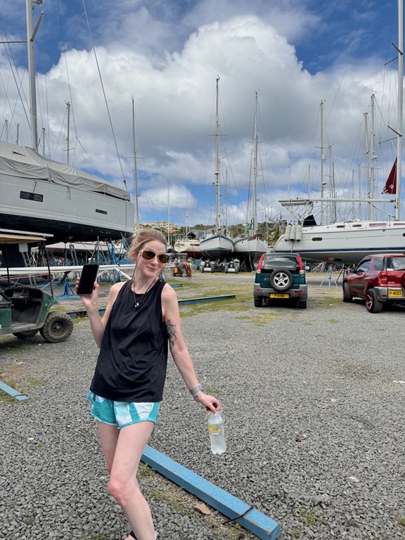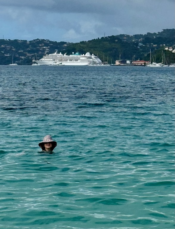 Jenny’s experience as a visitor to Grenada and Nancy Lu was unique to anyone before her. She was involved in all the pre-launch chores like cleaning up the dinghy before the dinghy chaps were tied on, going grocery shopping for meals, and the launch itself. No one else has had to climb a ladder and hoist themselves over the air conditioner in the companionway to enter the closed up, darkened saloon in order to hang out there while Nancy Lu’s all jacked up and looking rough after months closed up in the boat yard,…