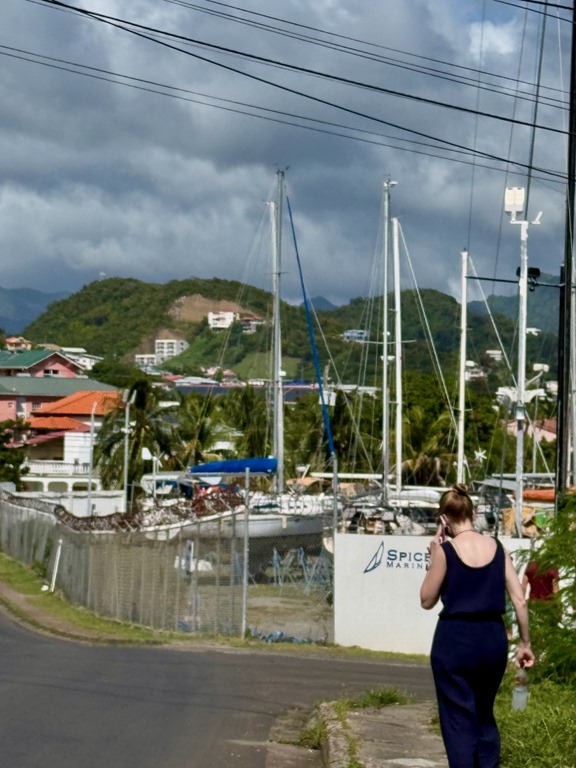 We spent the week before Jenny got here shuttling back and forth from our little cottage at the University Club to Spice Island Marine boatyard using Saint George’s University’s wonderful bus system offered to all students and members, like us, staying at the University Club.