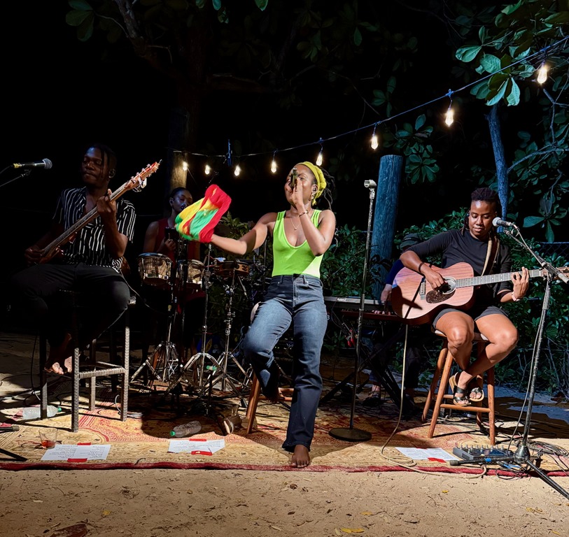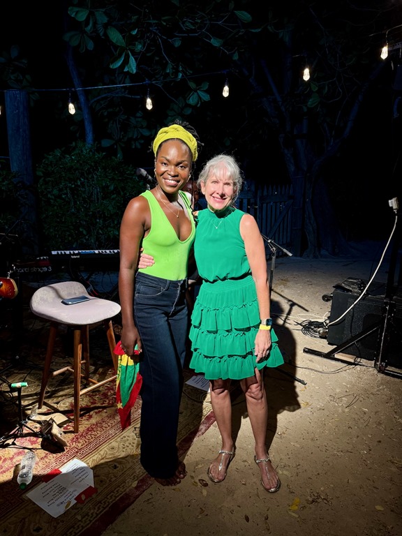 We treated ourselves to the mellow, Caribbean groove of Sabrina Francis at the first of her limited series of performances called Sabrina’s Sunset Sessions. We went with our friends, Annemarie and Steve on s/v Freebooter. Annemarie and I sat right on the front row to most fully enjoy this intimate concert at Rocky’s Beach Bar at BBC Beach. The February 7th concert coincided with the 51st anniversary of Grenada’s independence—my idea of a perfect celebration! I had fun singing and vibing along with the familiar set list!