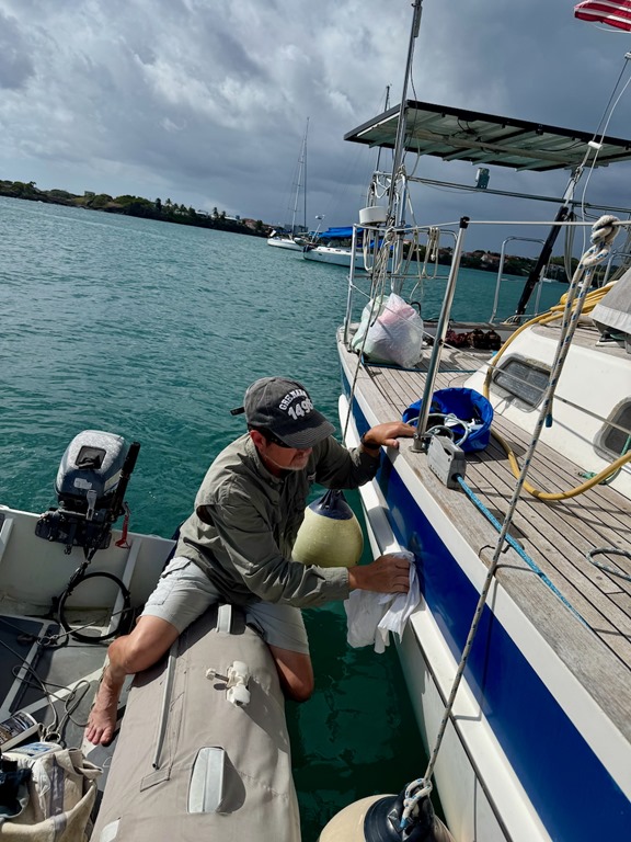 Nancy Lu is in a constant state of maintenance. Mark is captain and chief upkeep officer! Recently, I’ve polished up the stainless steel and Mark has waxed and buffed the blue stripe among other things, but back to the fun stuff…