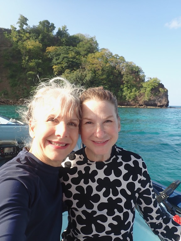 Hi neighbors. I was so hoping you were going to write a picture blog so that I could go on “vacation”. The prettiest pictures of all were the ones with you Kathy and your lovely adventurous sister. Your faces just glow with love when you take a picture together! My favorite pictures of all I think was on the bus home with Mark just behind you. Very pleasant picture. I love the flower and other fruits growing that you photograph on your walks. I think they should hire you Kathy to showcase the islands. What beautiful pictures from boat and from the beach. Such lovely beaches and a great time to be there it looks like. It is clear you have real respect for the people there and love of the islands. . I must say that you and Mark are no longer casual boat sailors. You could sail anywhere now I think. You both have earned “Captain” in front of your name. Your sis sure had a nice visit. Glad she did not get sunburned. I love to swim and love to swim in the Caribbean. Looks like your sis is a water baby also! Happy times and thank you for letting us enjoy them too. Sail safely on. All is well at your house. .