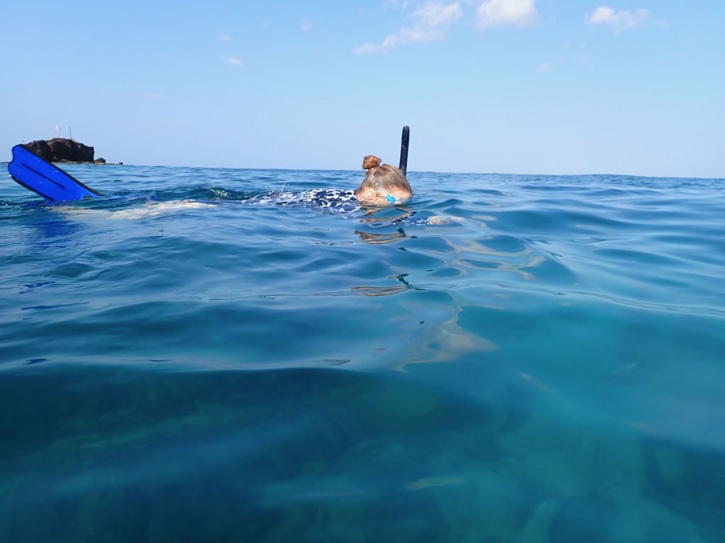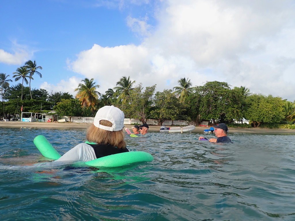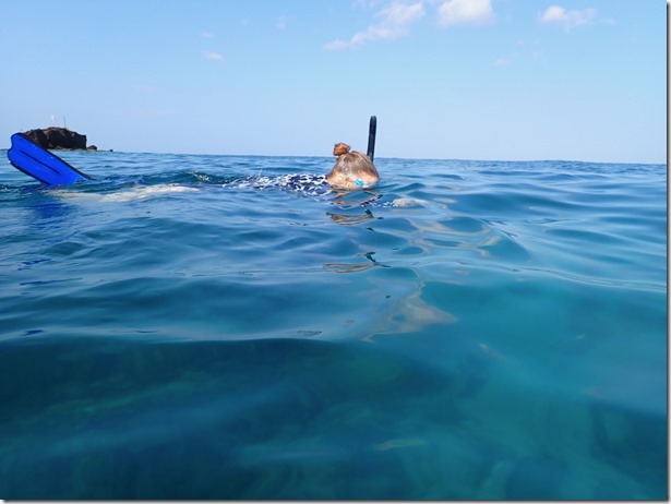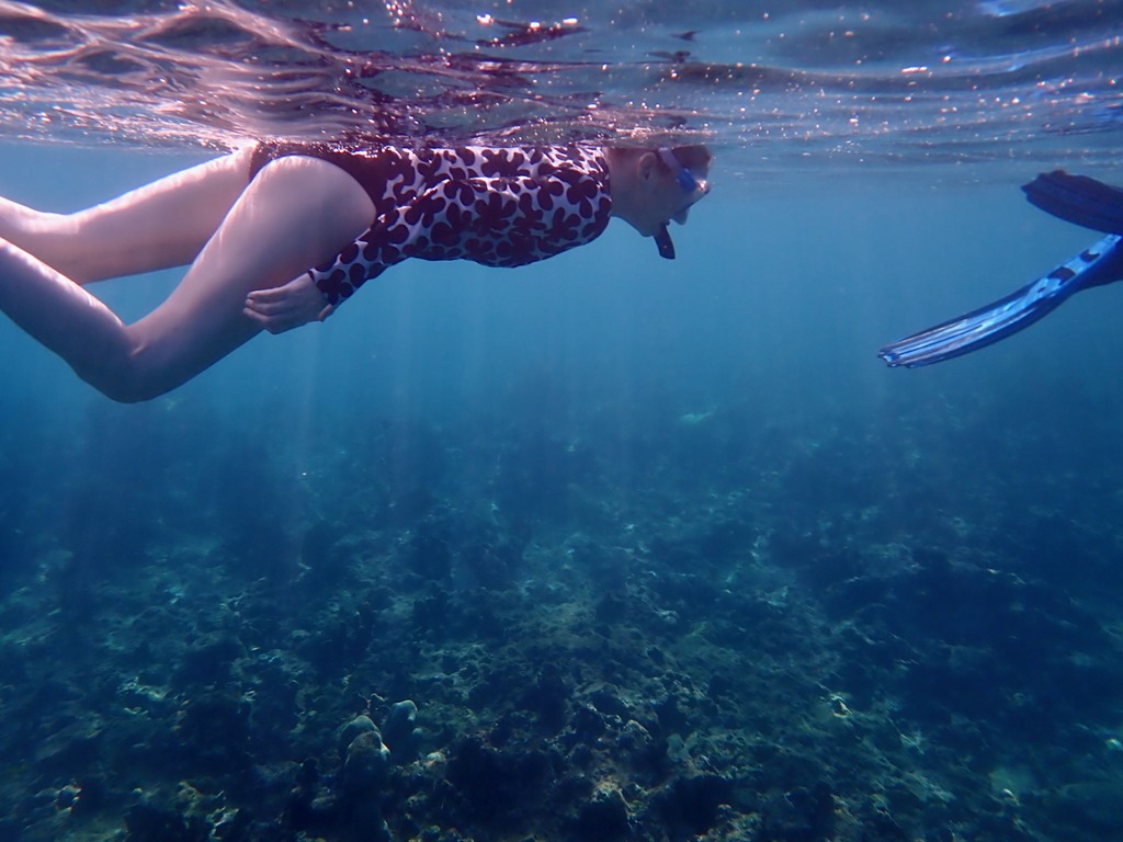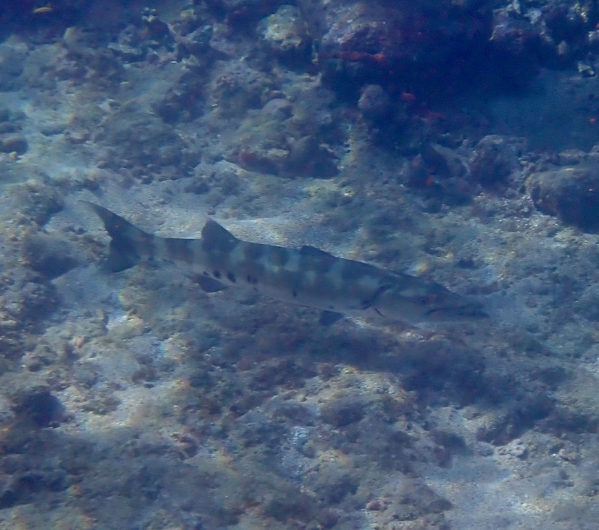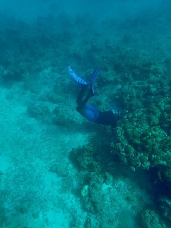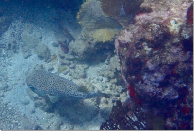 Our first snorkeling spot was Flamingo Bay. Our guide dove down to try and coax out creatures for us to observe such as the shy Porcupine Fish, but it was Jenny who spotted the barracuda in the reef!